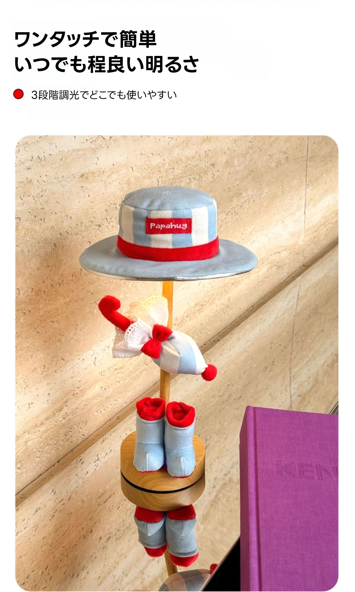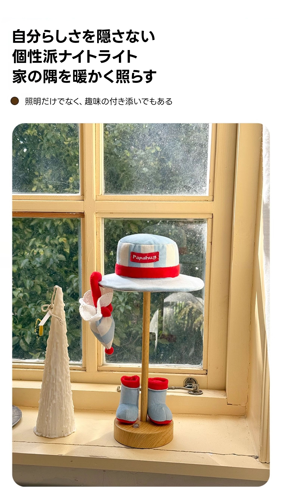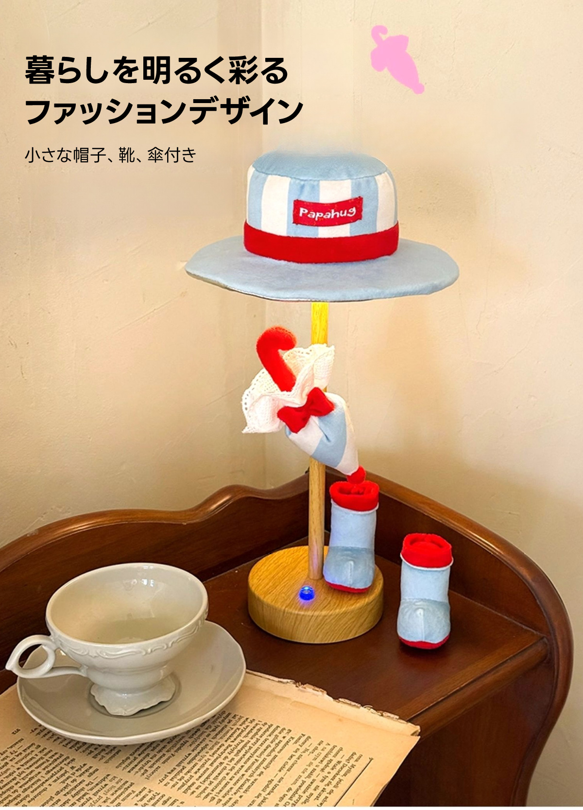 - 【ユニークなデザインと多機能性】ハットナイトライトは、帽子、ブーツ、傘のモチーフが組み合わさったユニークなデザインが特徴です。3段階調光機能を備え、寝室やリビングでの使用に最適。ワンタッチで明るさを調整でき、様々なシーンで活躍します。