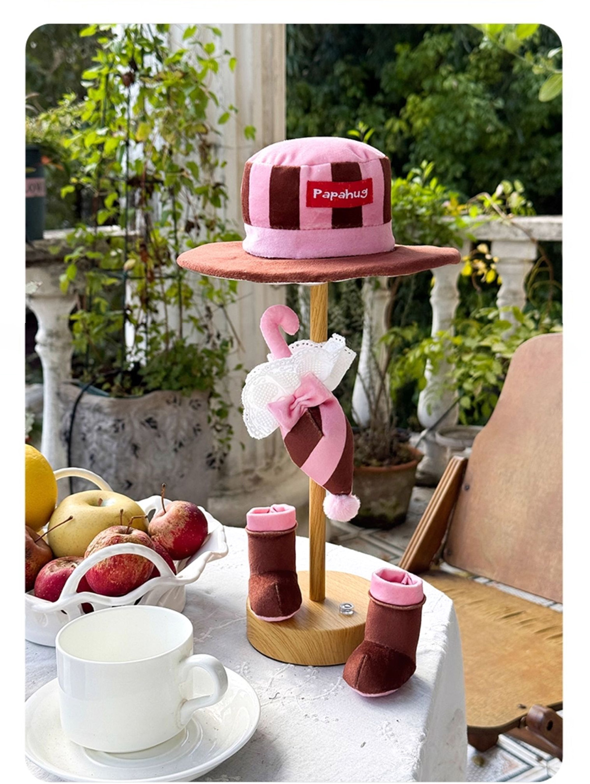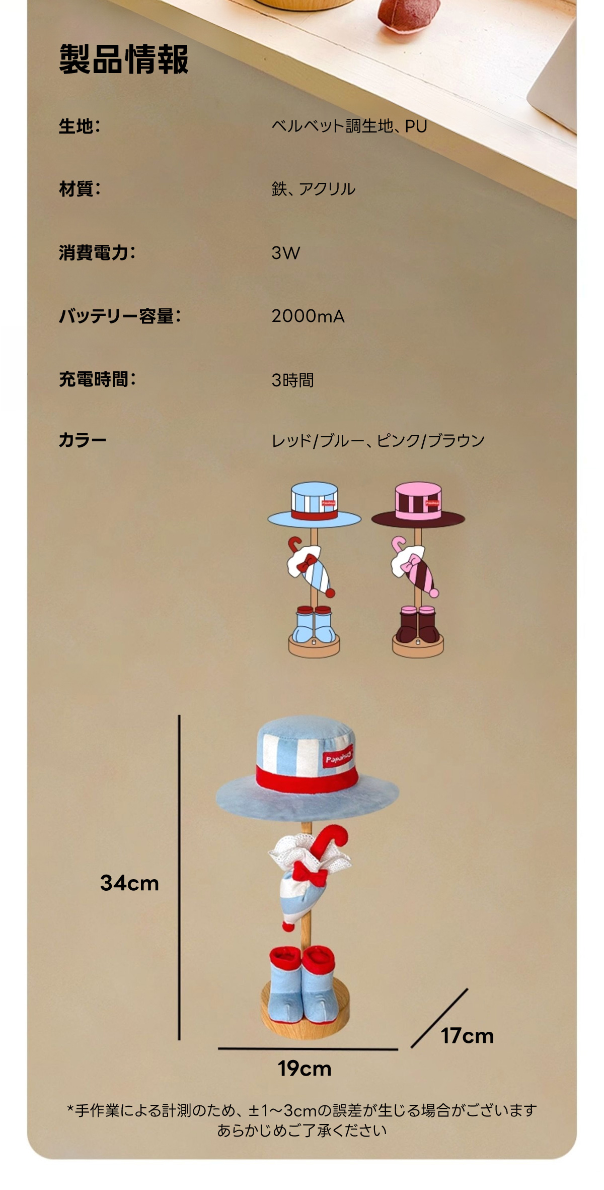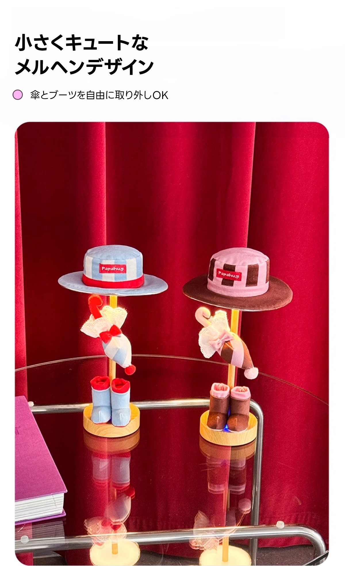 - 【高品質な素材と優れた耐久性】ベルベット調の生地とPU、鉄、アクリルを使用し、質感が良く耐久性も抜群。取り外し可能な帽子、ブーツ、傘のモチーフで、自由なアレンジが可能。コンパクトでありながらしっかりとした作りで、長くご使用いただけます。