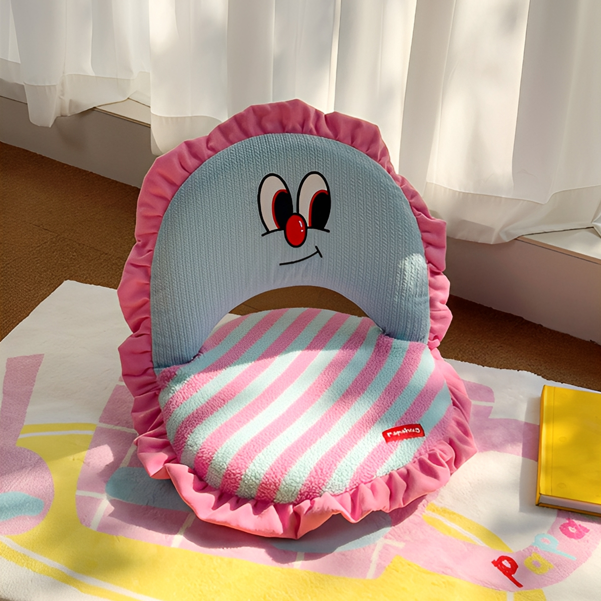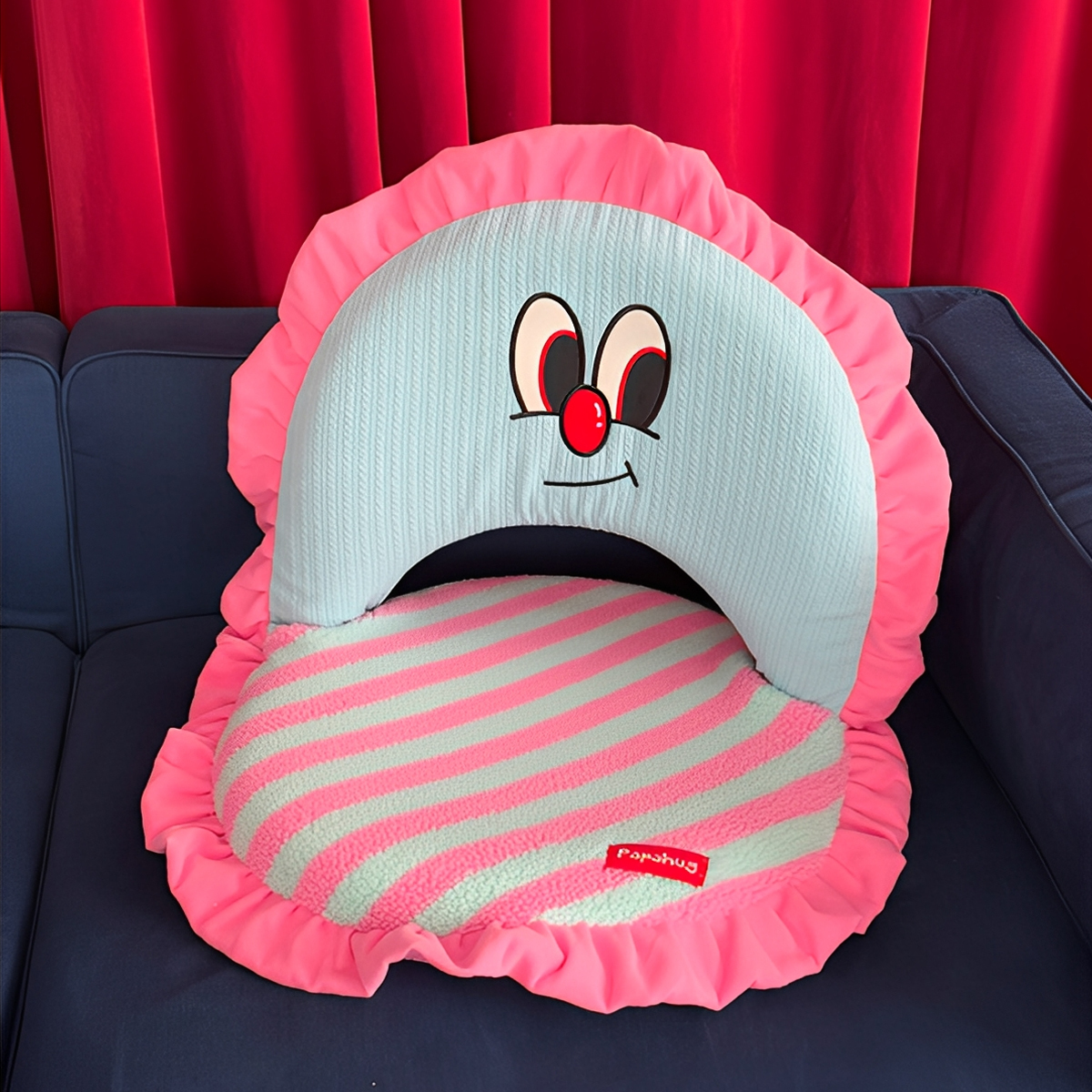 - 【高品質な素材とユニークなデザイン】ブークレ生地とリブニットを使用したこのチェアは、柔らかさと耐久性を兼ね備えています。ユニークな顔のデザインが施されており、部屋に置くだけで空間を楽しく彩ります。