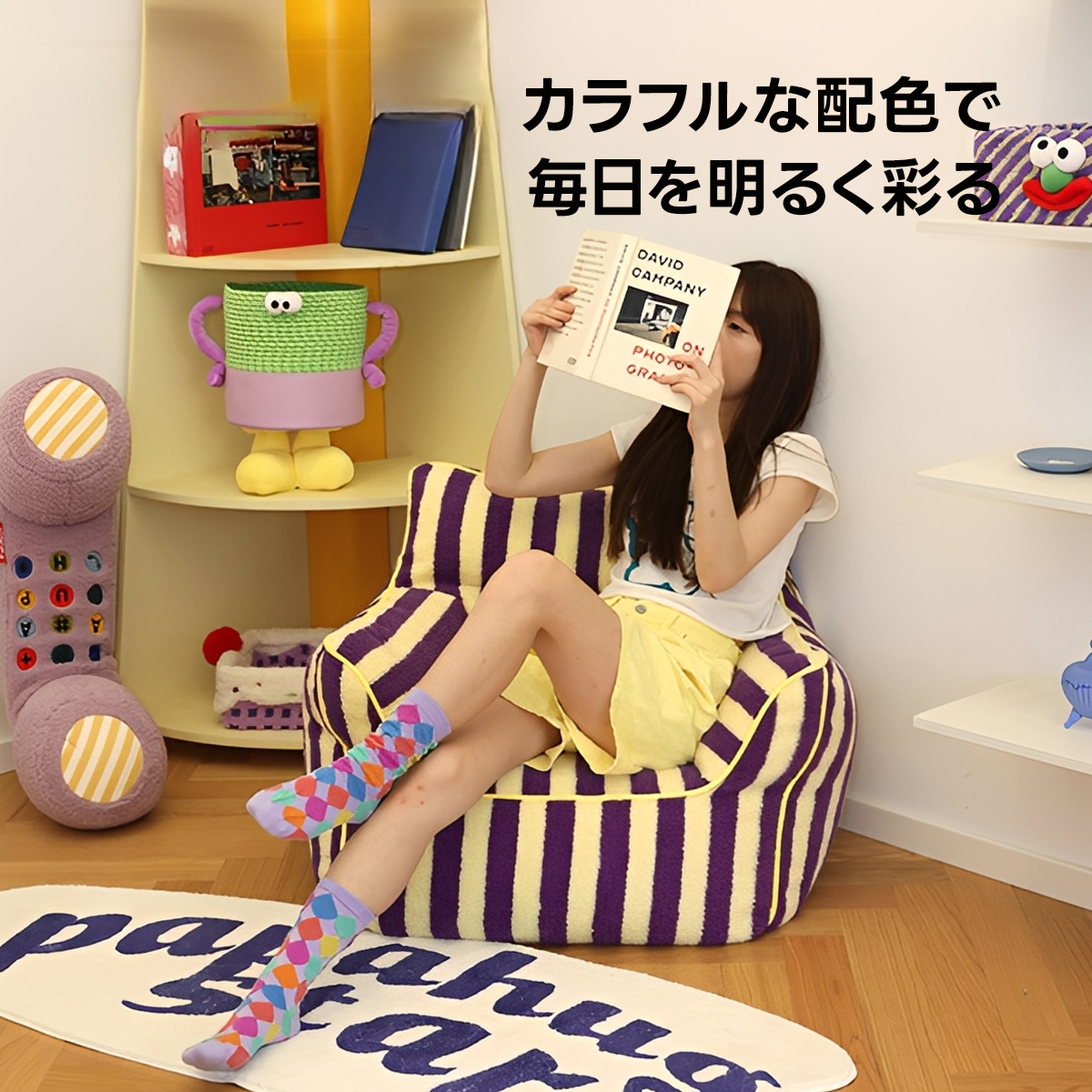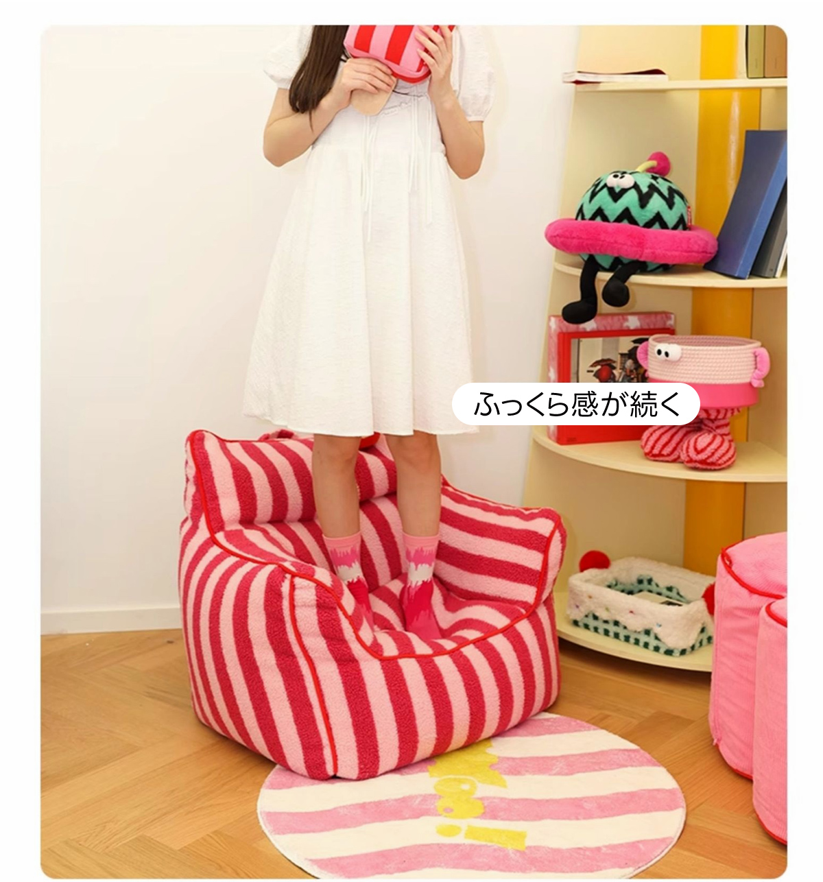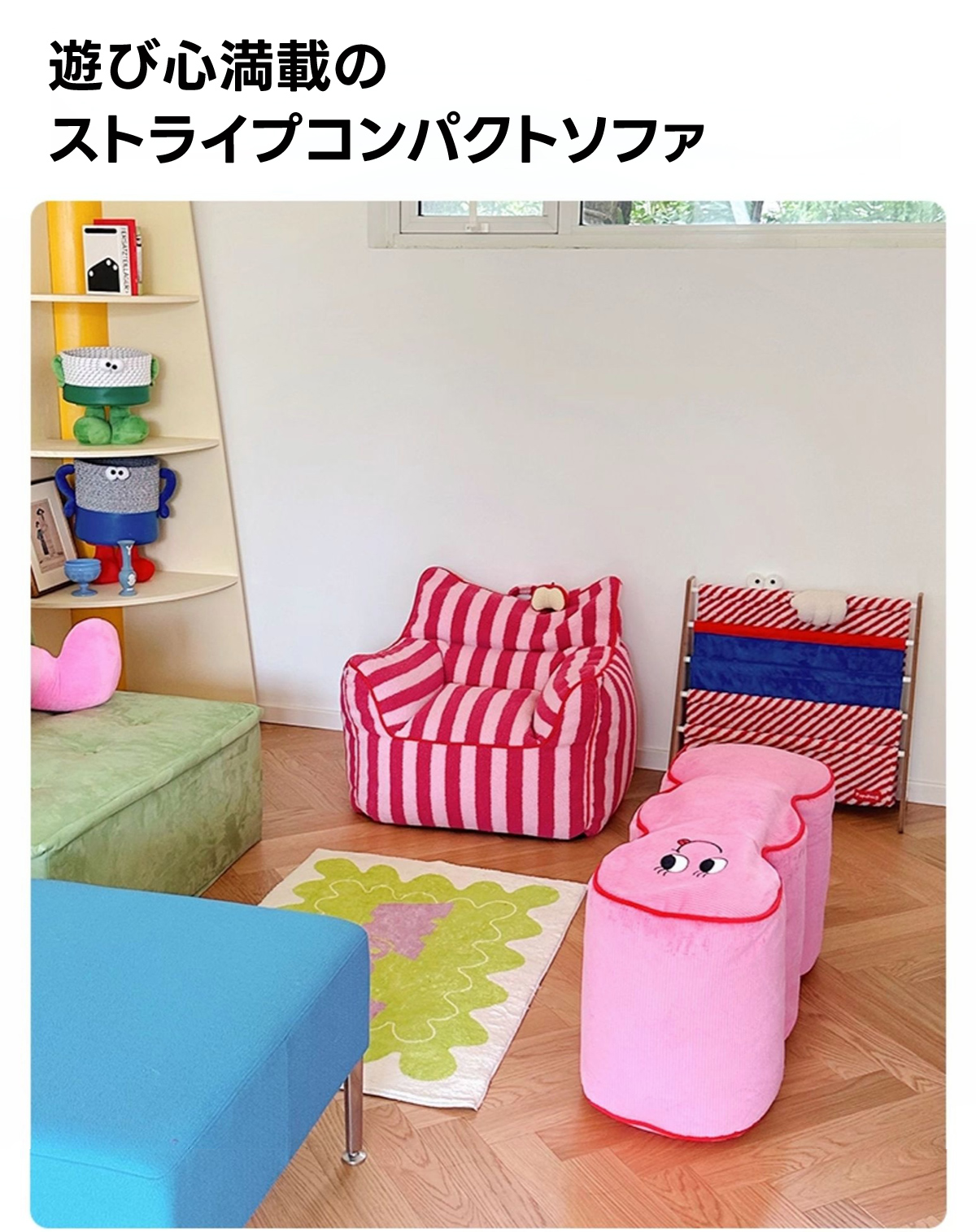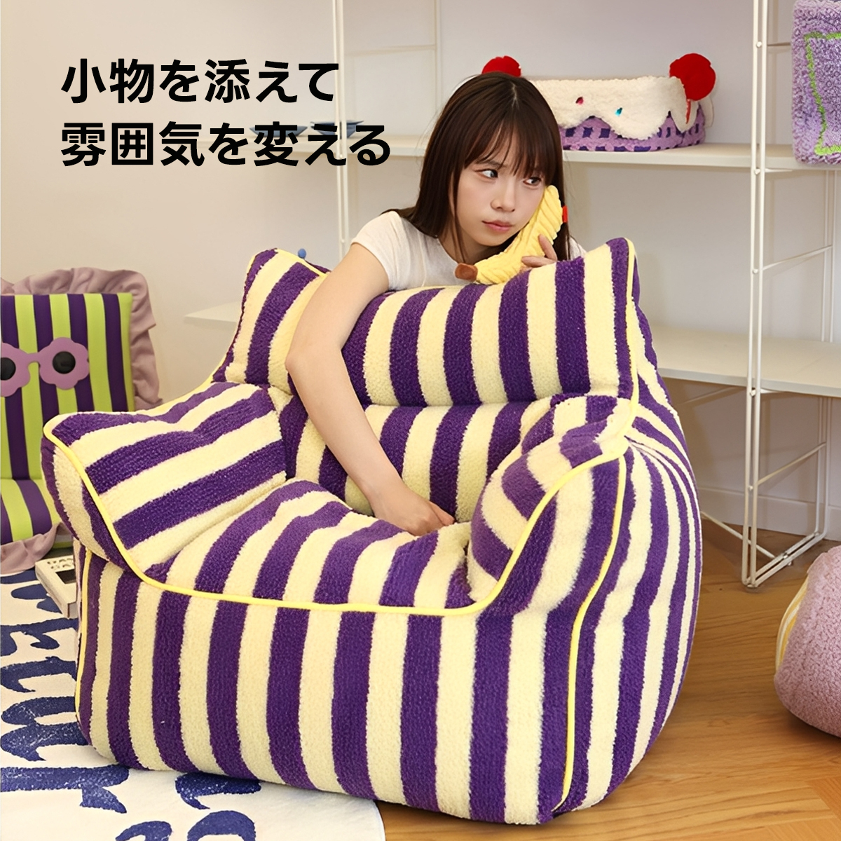 - 【鮮やかなデザインで空間を彩る】ストライプコンパクトソファは、カラフルなストライプ柄でお部屋にリズムと楽しさをプラスします。リビングや寝室にぴったりで、インテリアに合わせてレッド/ベビーピンクとパープル/イエローの2色から選べます。