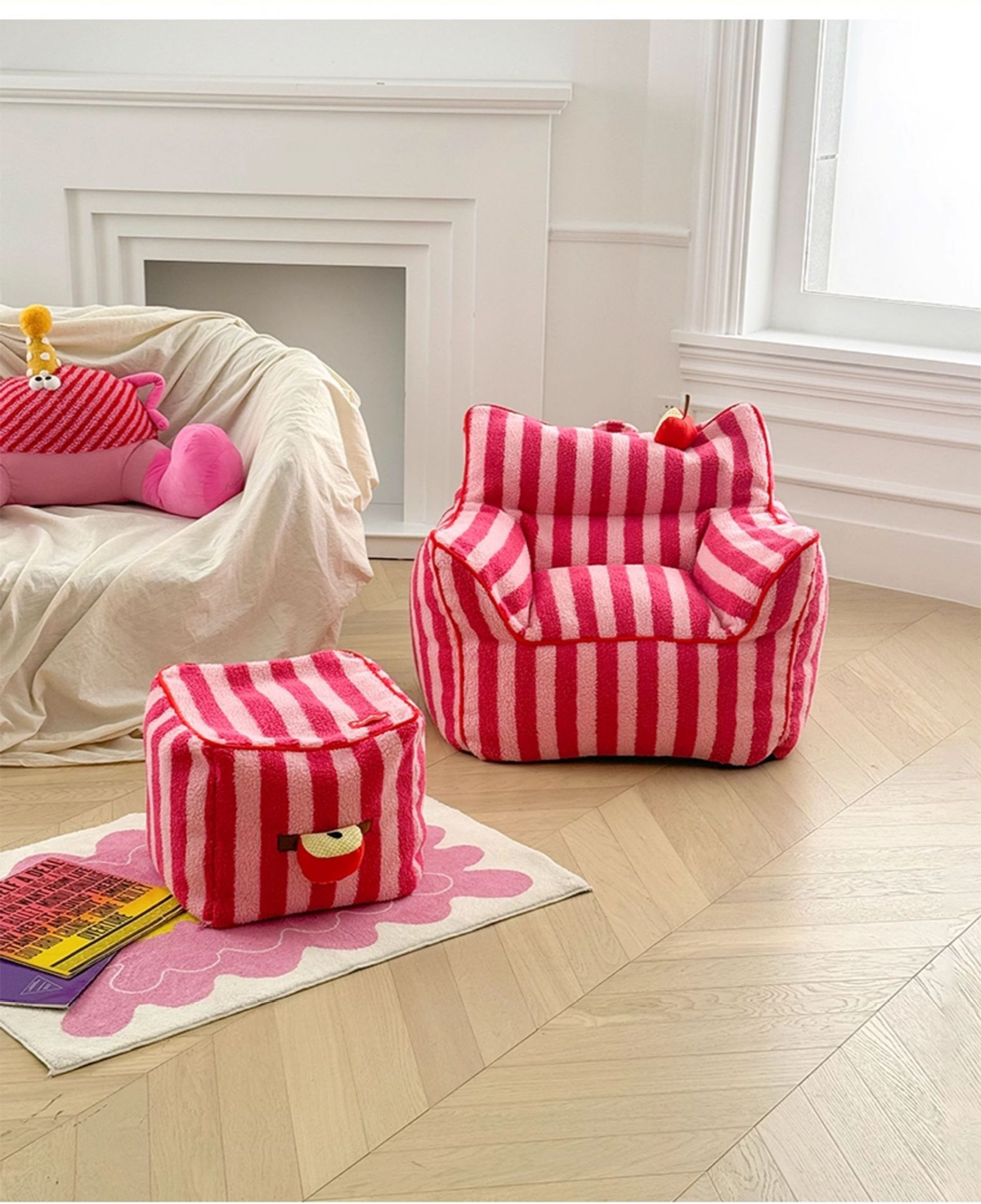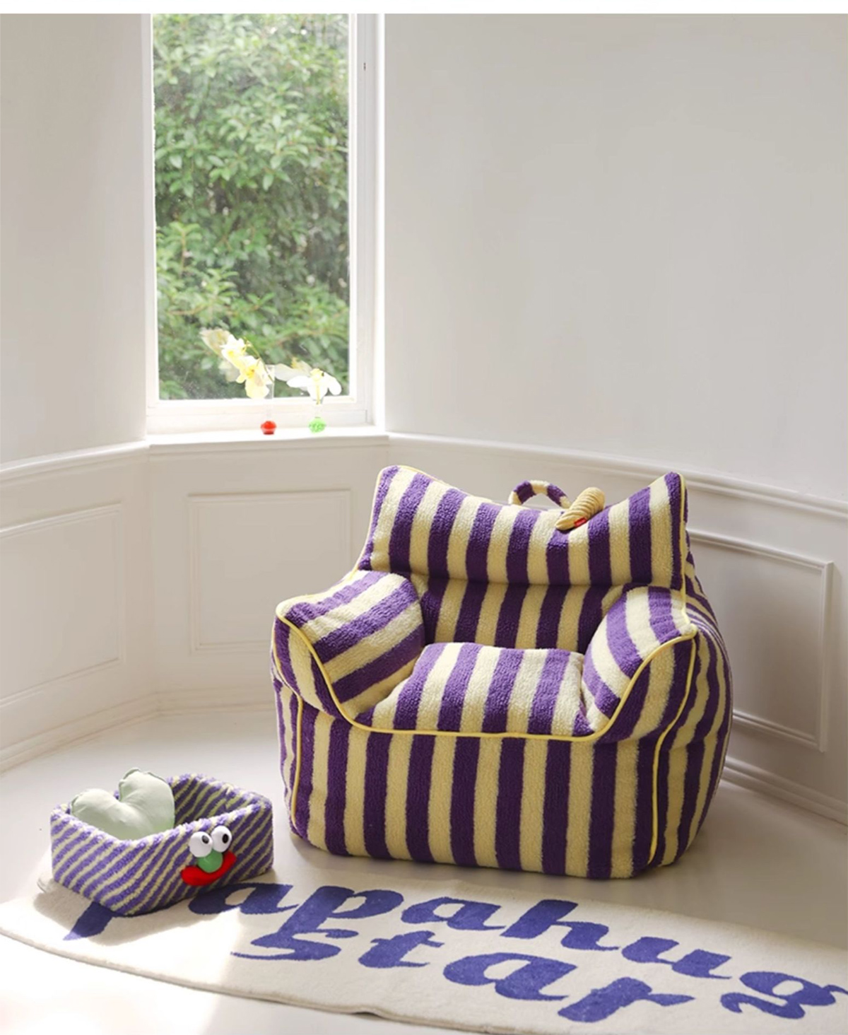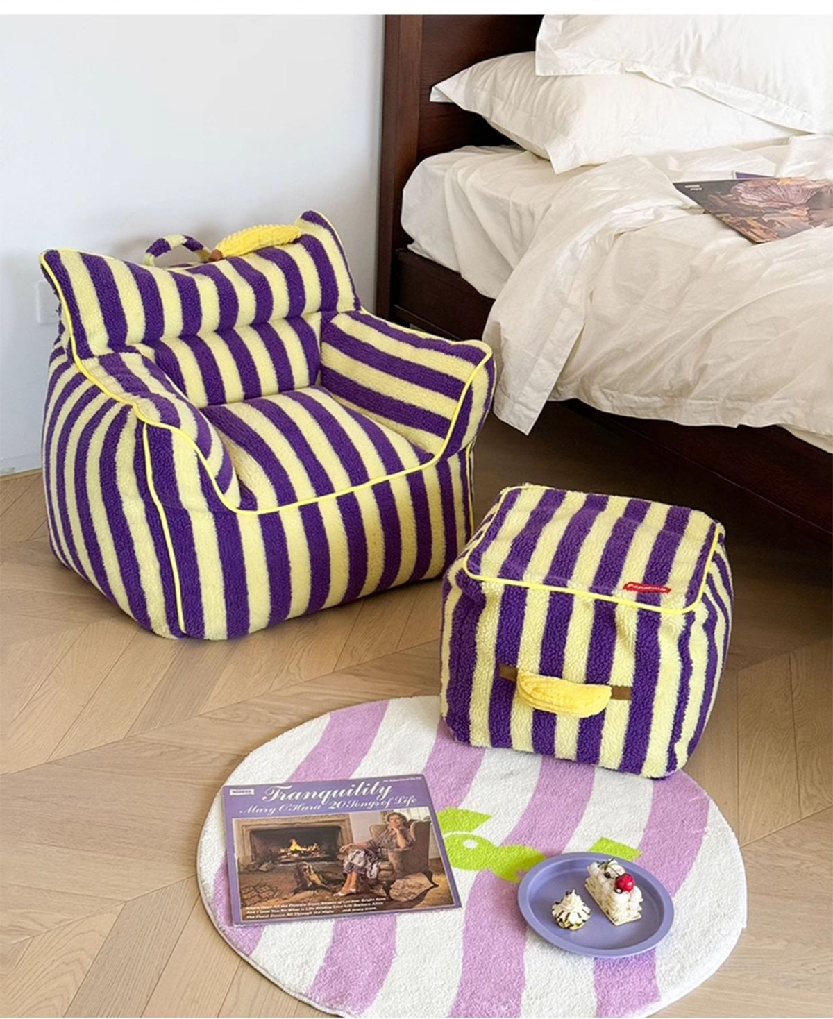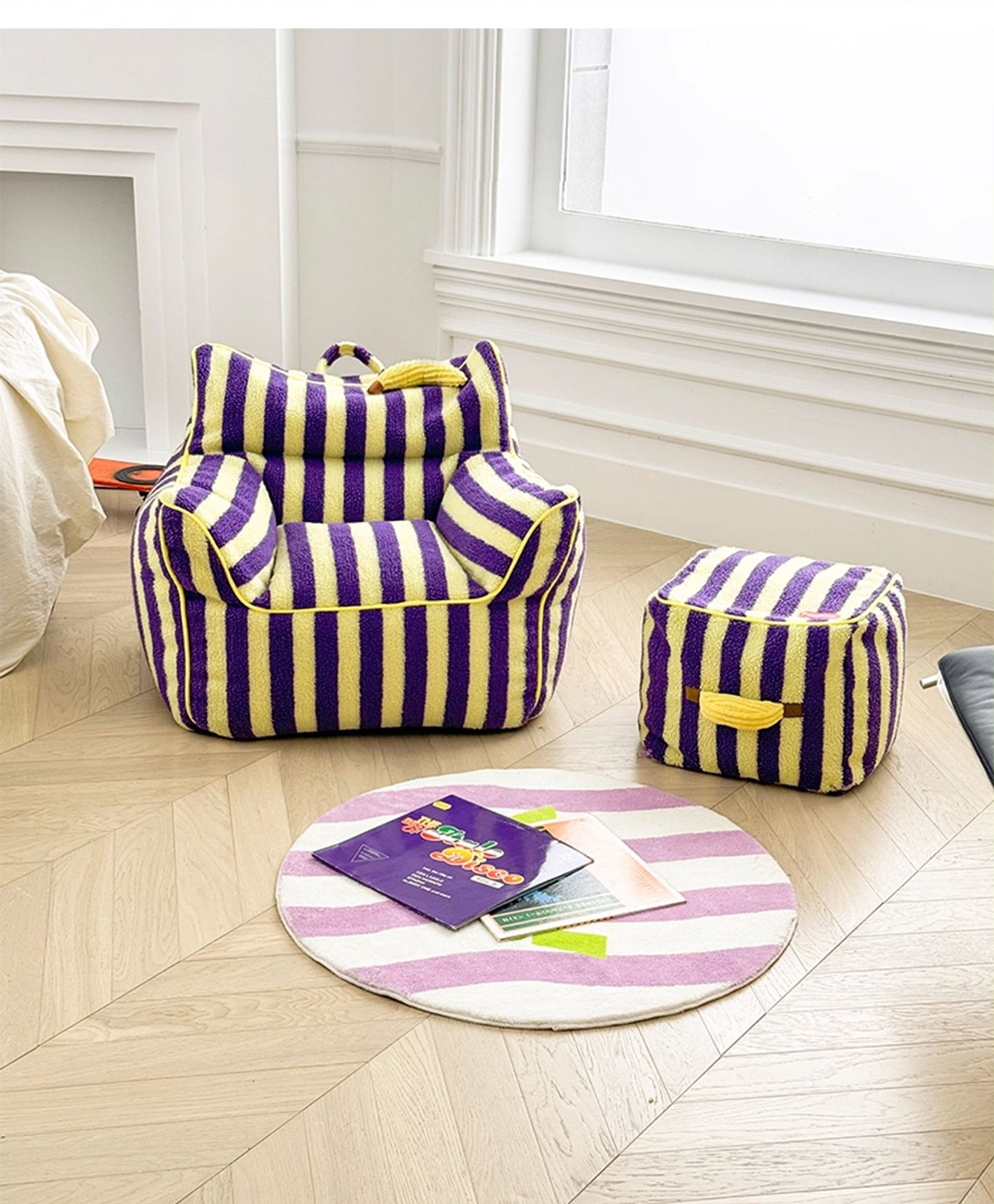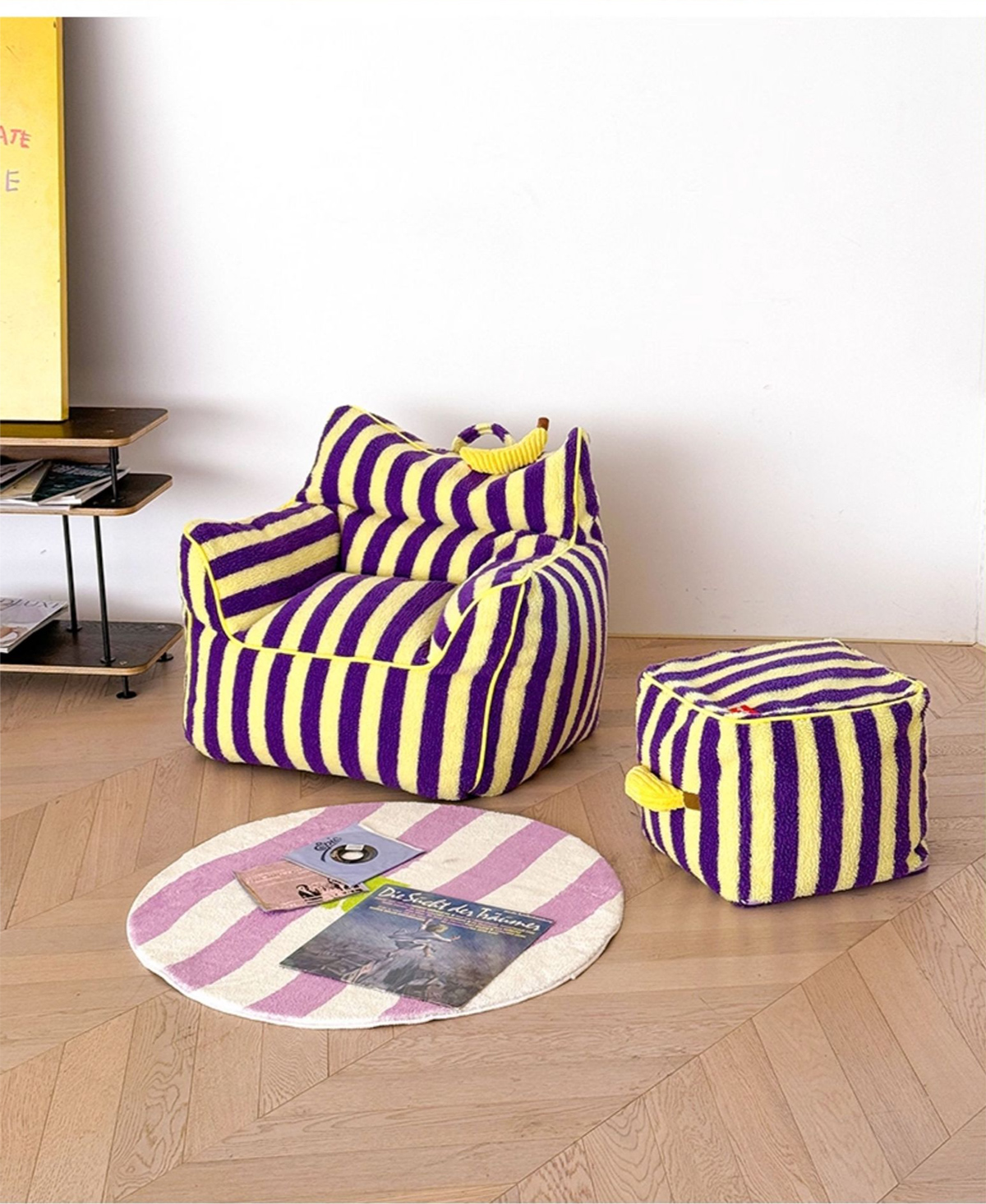 - 【鮮やかなデザインで空間を彩る】ストライプコンパクトソファは、カラフルなストライプ柄でお部屋にリズムと楽しさをプラスします。リビングや寝室にぴったりで、インテリアに合わせてレッド/ベビーピンクとパープル/イエローの2色から選べます。