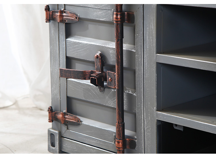 - 【インダストリアルデザインの魅力】ヴィンテージ感とモダンなデザインが融合したこのサイドボードは、エイジング加工によりユーズド感を演出し、お部屋にアクセントを加えます。シックなグレーのカラーはどんなインテリアにも自然に溶け込みます。