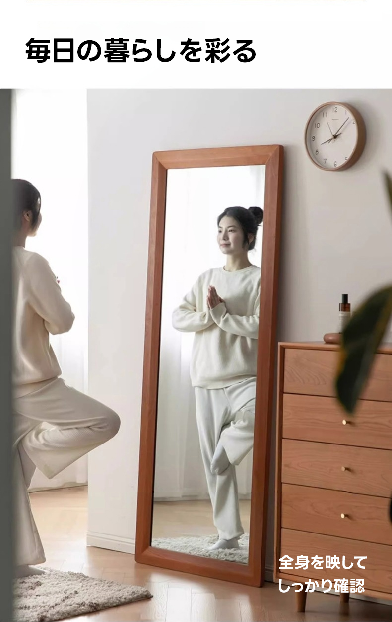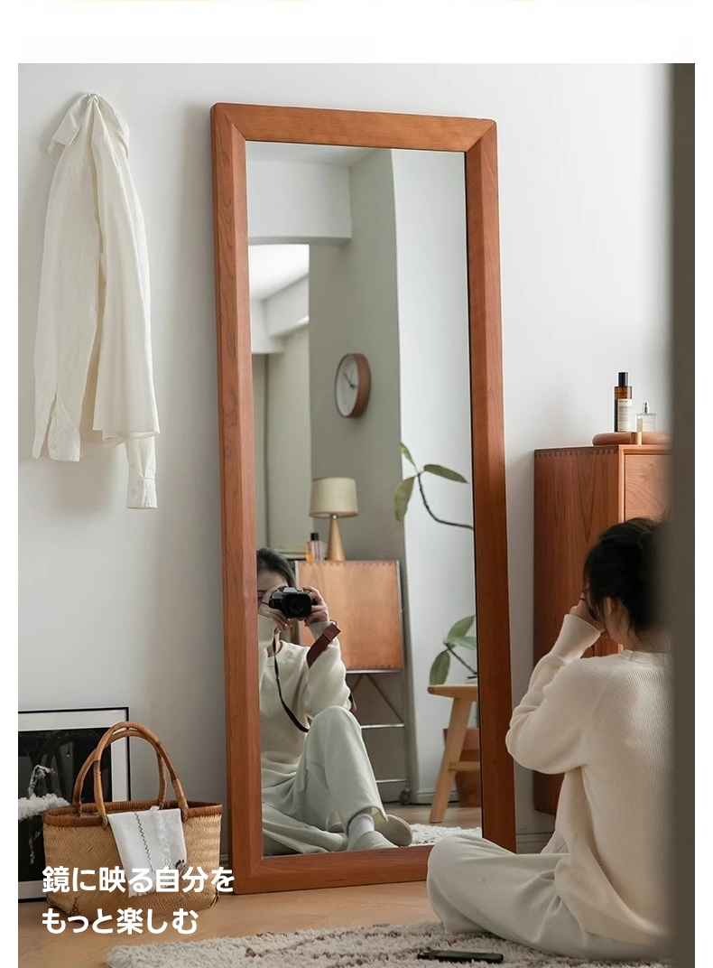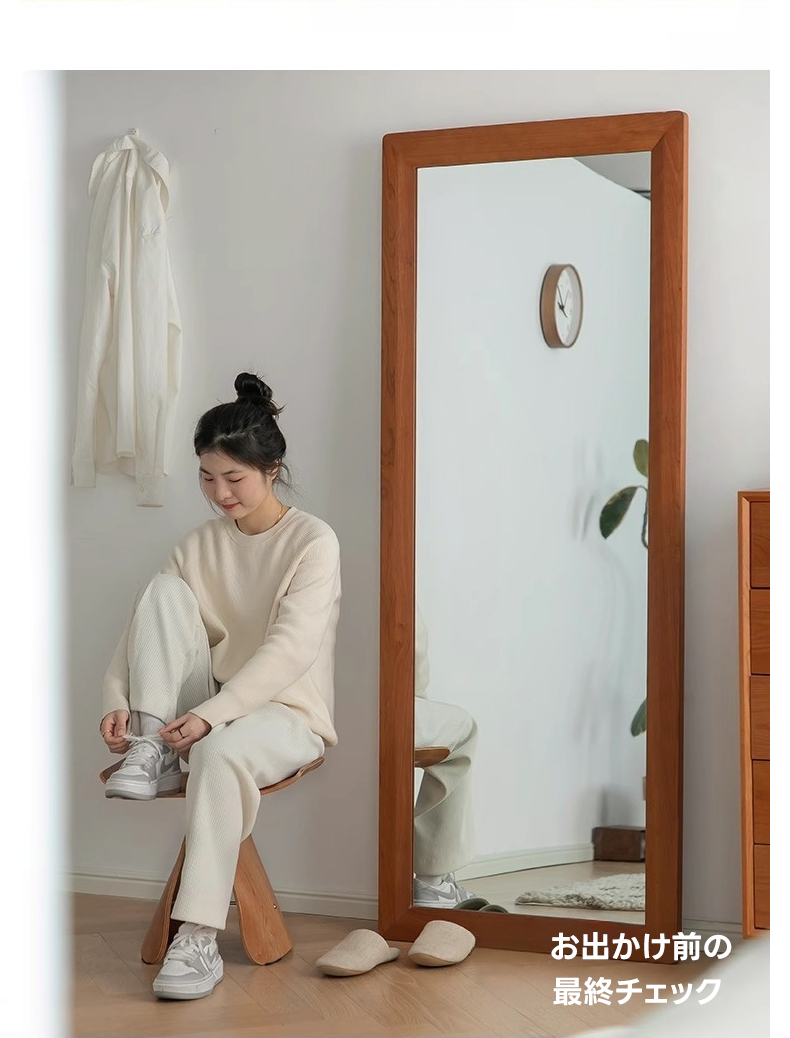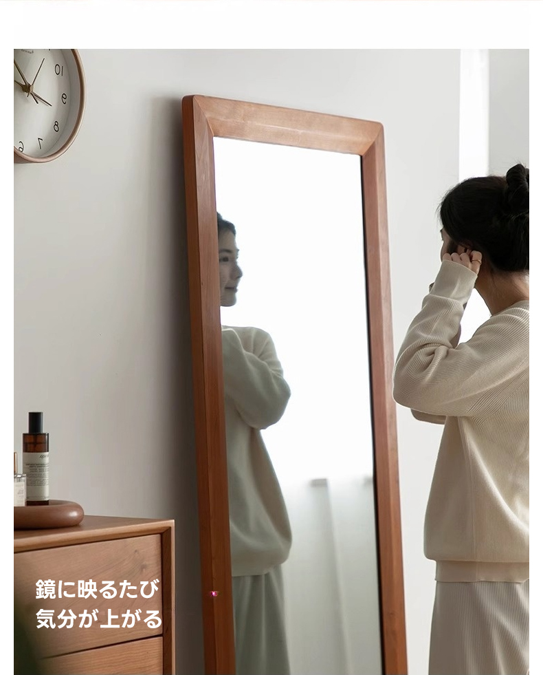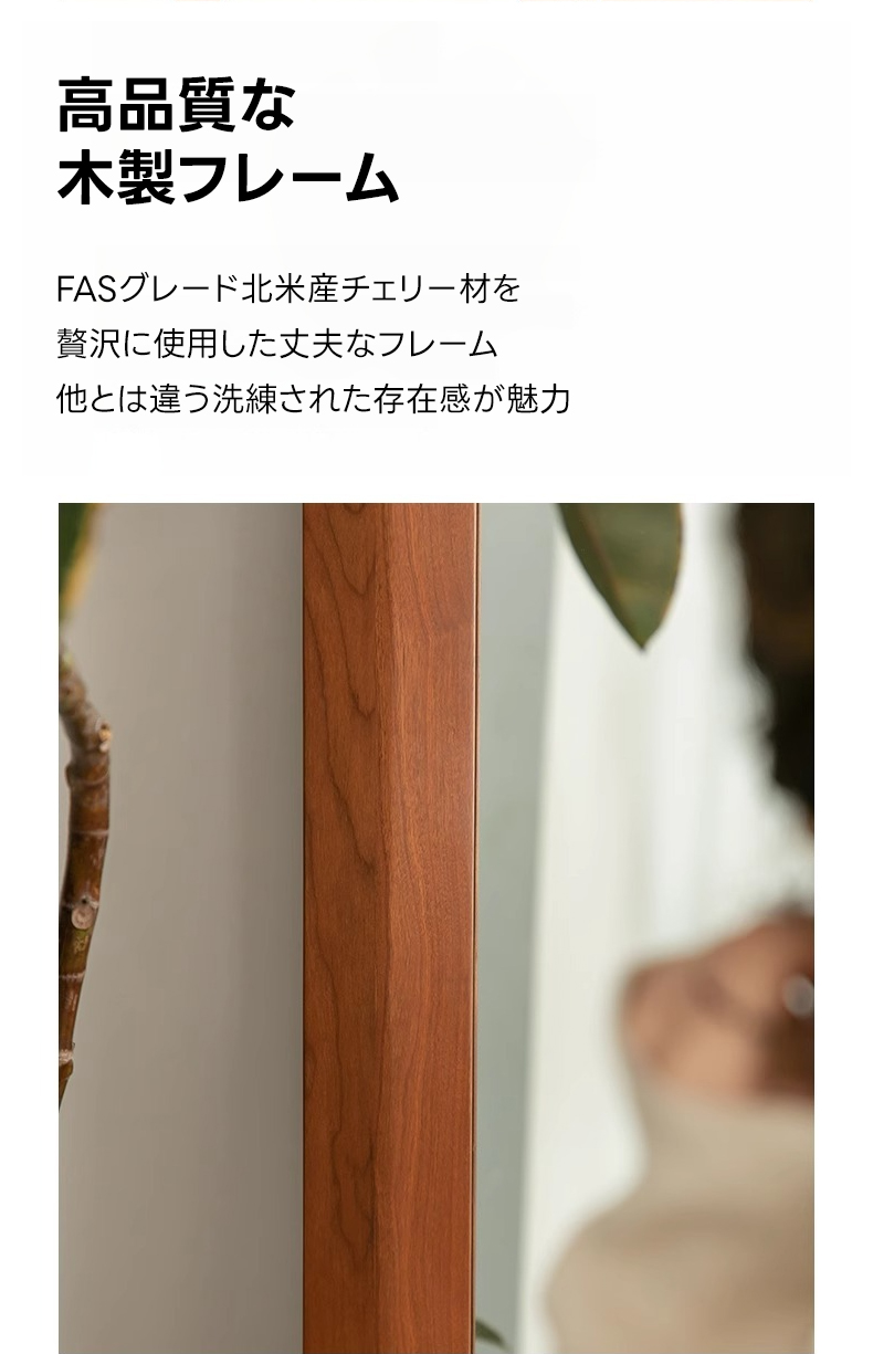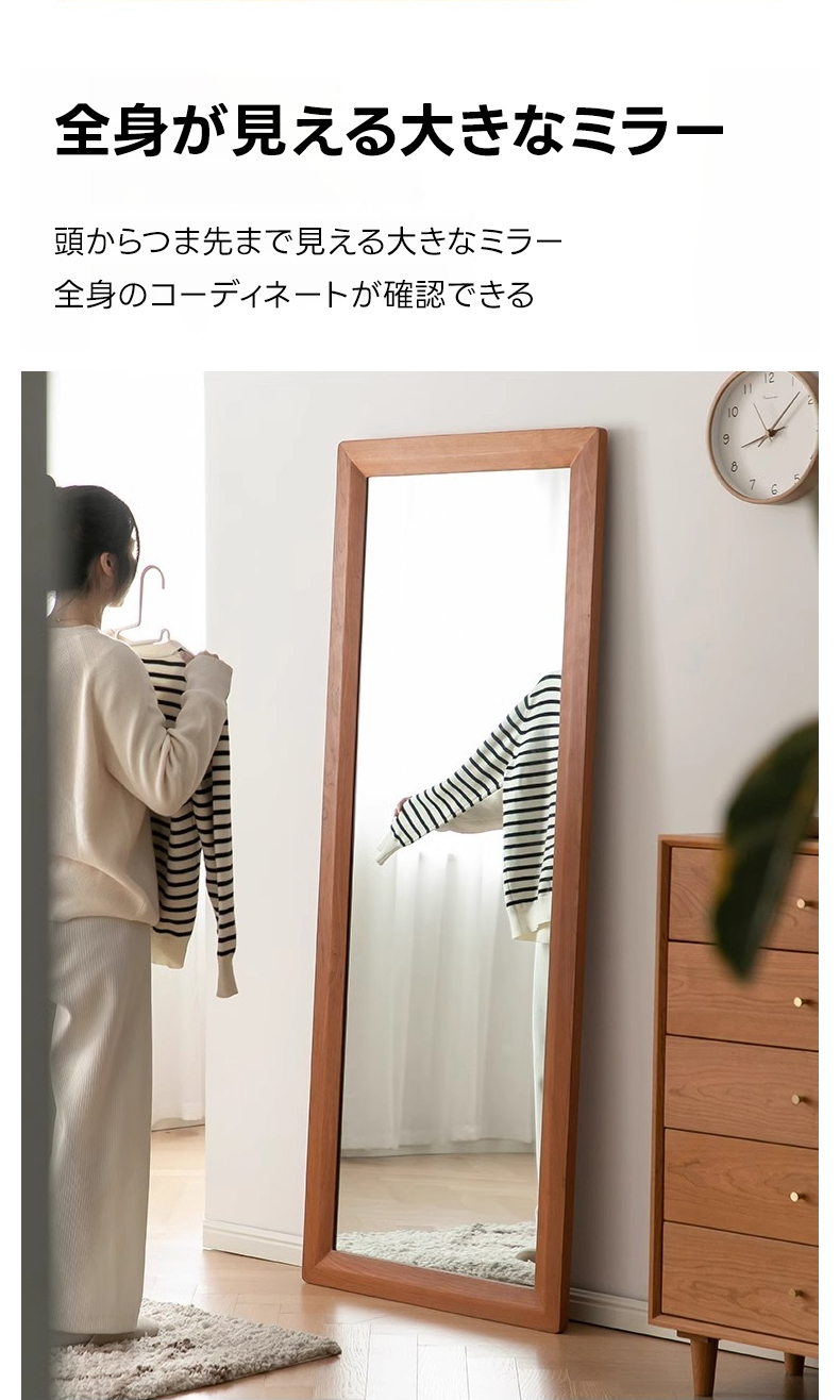 - 【高品質ミラーでクリアな映り】チェリー材 ナチュラルミラースタンドは、クリアで鮮明な映りを実現する高品質ミラーを採用しています。変形や黒ずみが起きにくく、全身を映し出す大きなサイズで、コーディネートの確認に最適です。