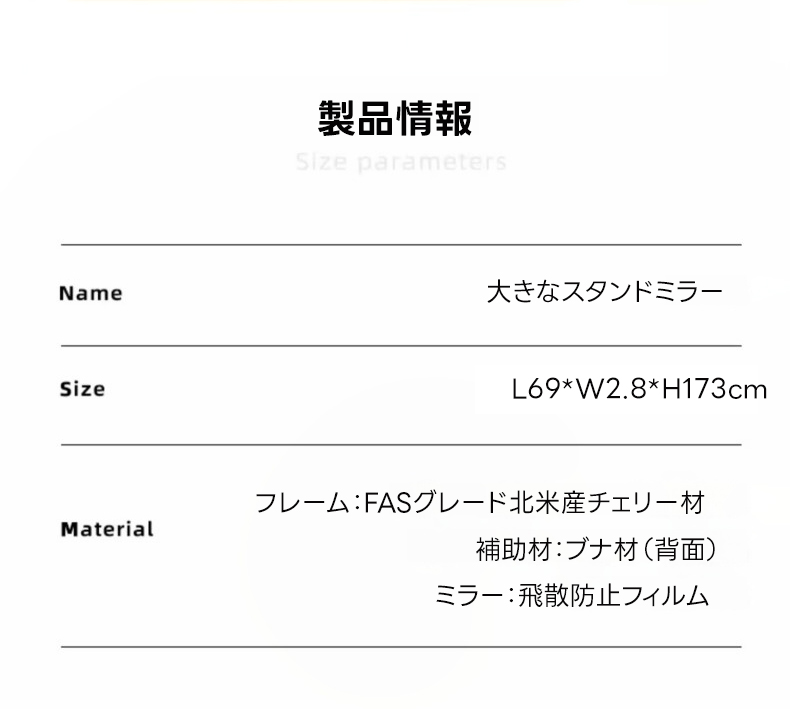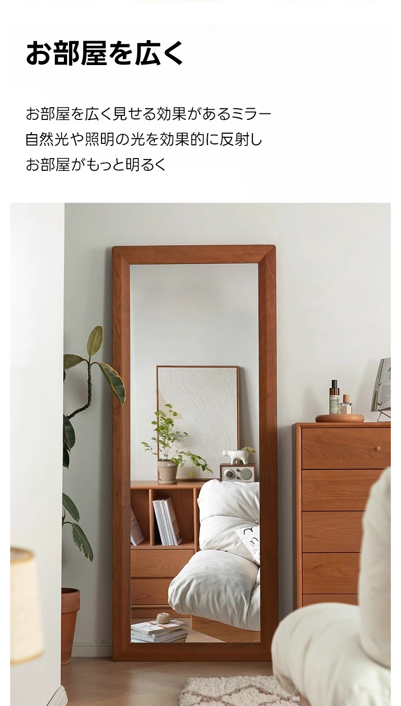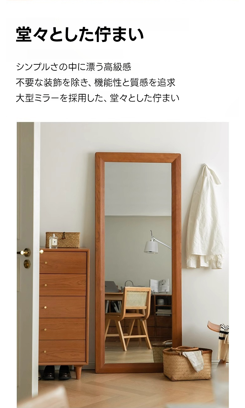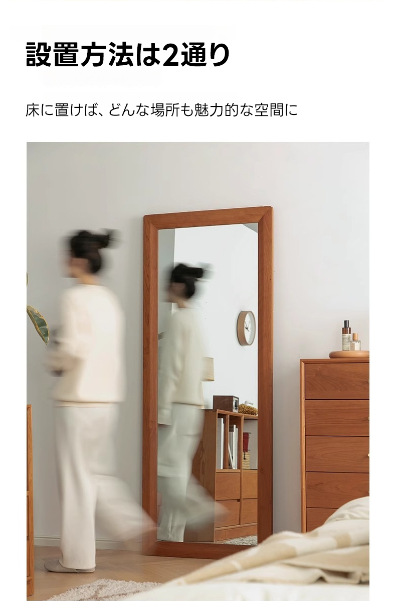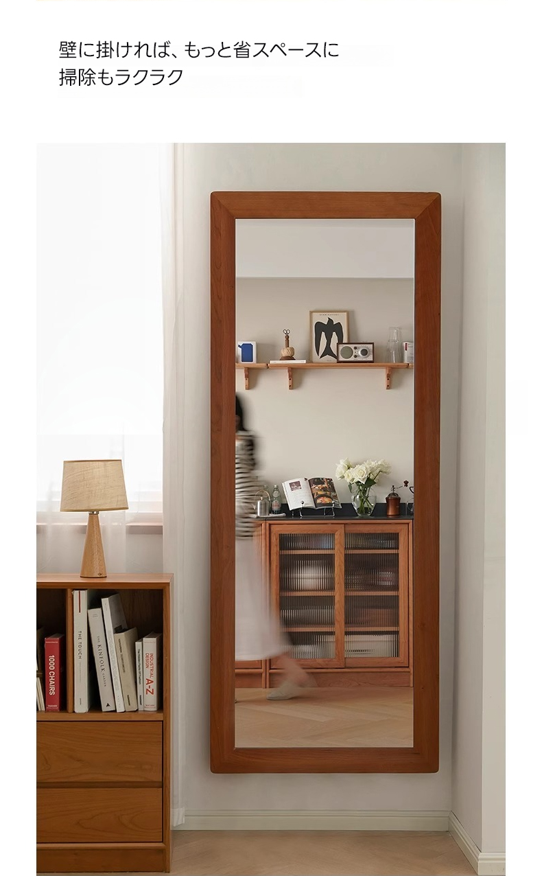 - 【高品質ミラーでクリアな映り】チェリー材 ナチュラルミラースタンドは、クリアで鮮明な映りを実現する高品質ミラーを採用しています。変形や黒ずみが起きにくく、全身を映し出す大きなサイズで、コーディネートの確認に最適です。