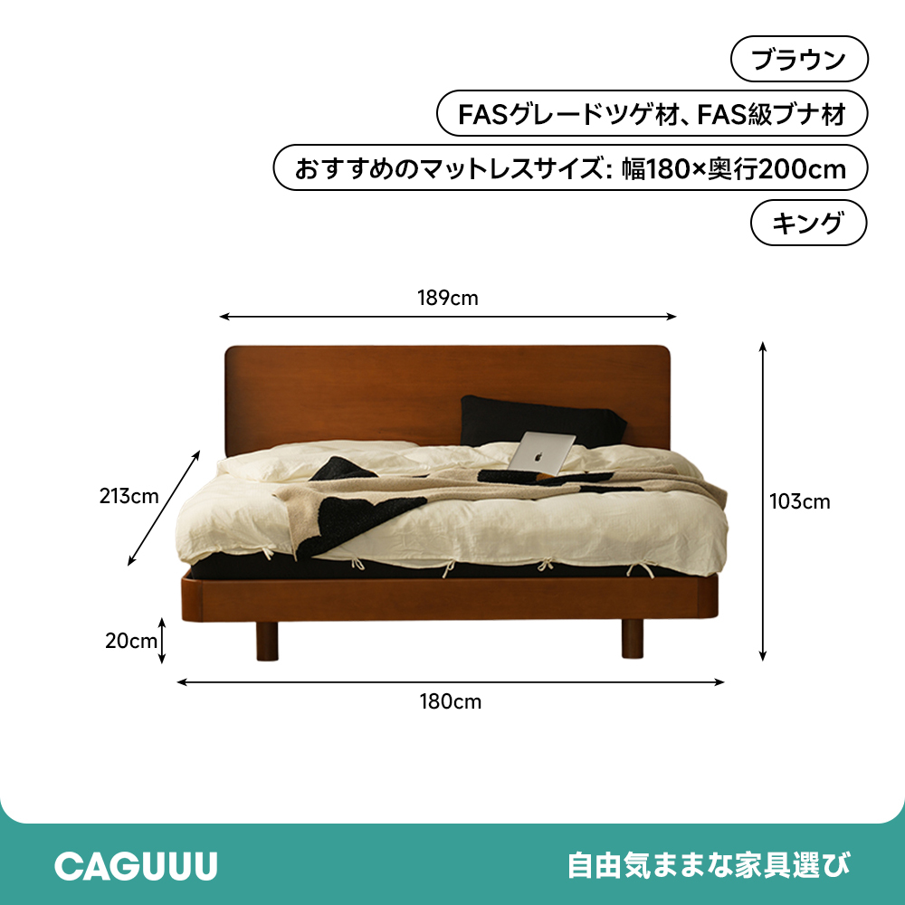 - 【高級木材使用のヴィンテージ風デザイン】北米産FAS級ツゲ材を使用したこのベッドは、美しさと耐久性を兼ね備えたヴィンテージ風デザインで、寝室に落ち着いた雰囲気をもたらします。