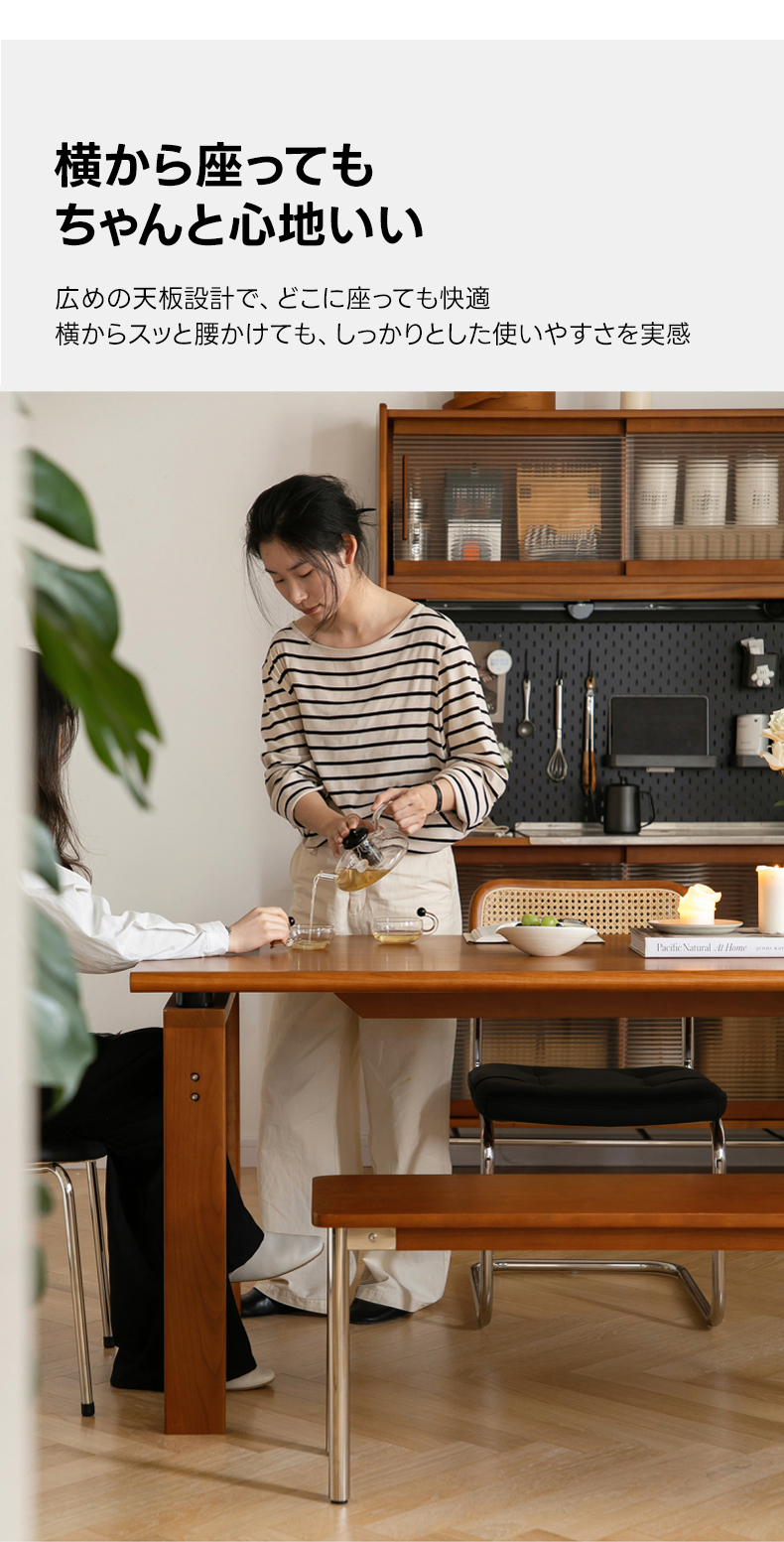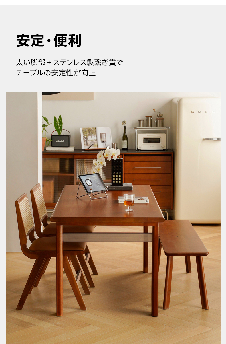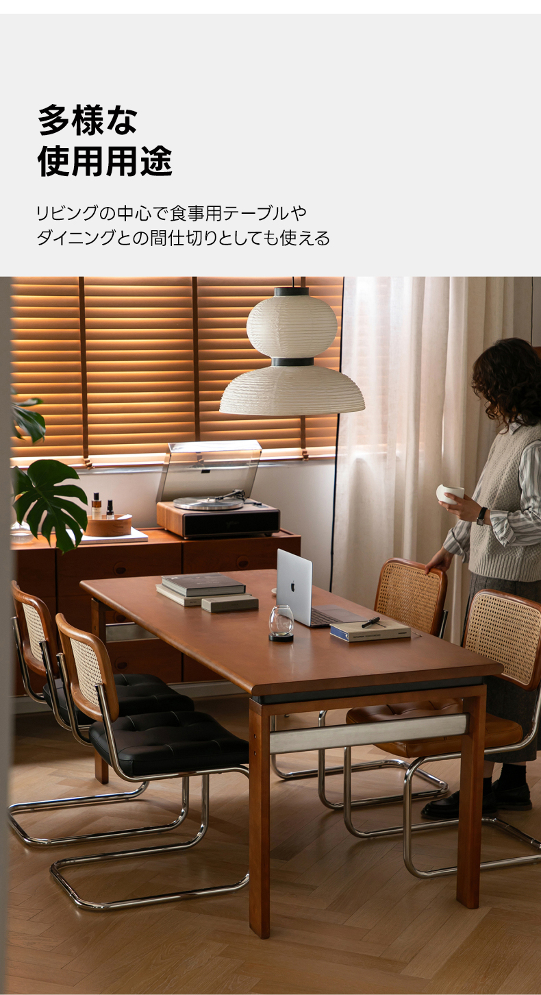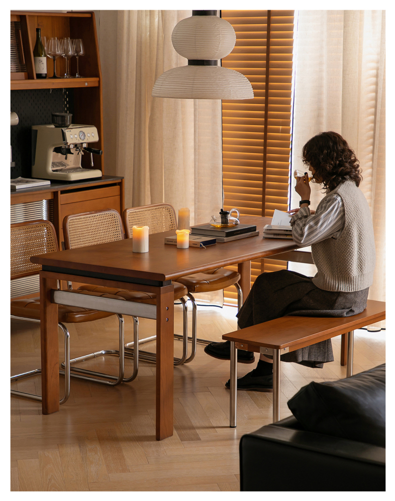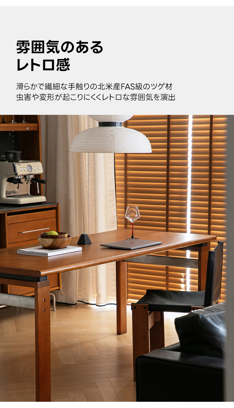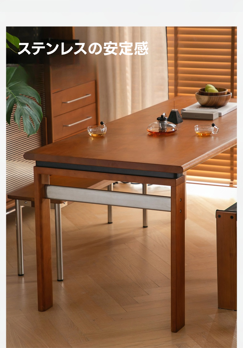 - 【高級素材使用で長持ち】:北米産FAS級チェリー材と良質なステンレスを組み合わせたこのダイニングテーブルは、耐久性と美しさを兼ね備えています。滑らかで繊細な木目がヴィンテージ風の落ち着いた雰囲気を演出し、長くご愛用いただけます。