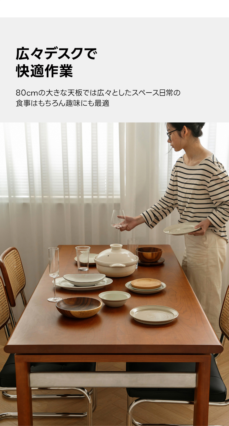 - 【幅広い用途と適用性】:広々とした天板は80cm幅で、食事はもちろん、趣味や作業スペースとしても最適です。一人暮らしからファミリーまで、様々な生活スタイルに対応し、どんなインテリアにも自然に溶け込みます。