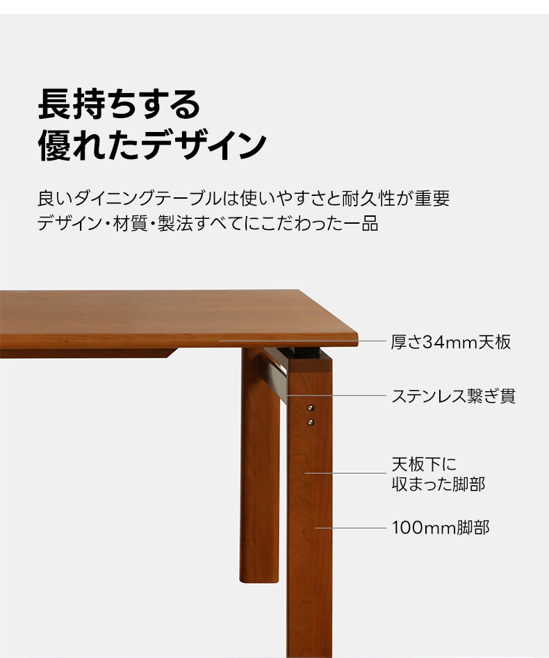 チェリー材 シンプルデザインダイニングテーブル