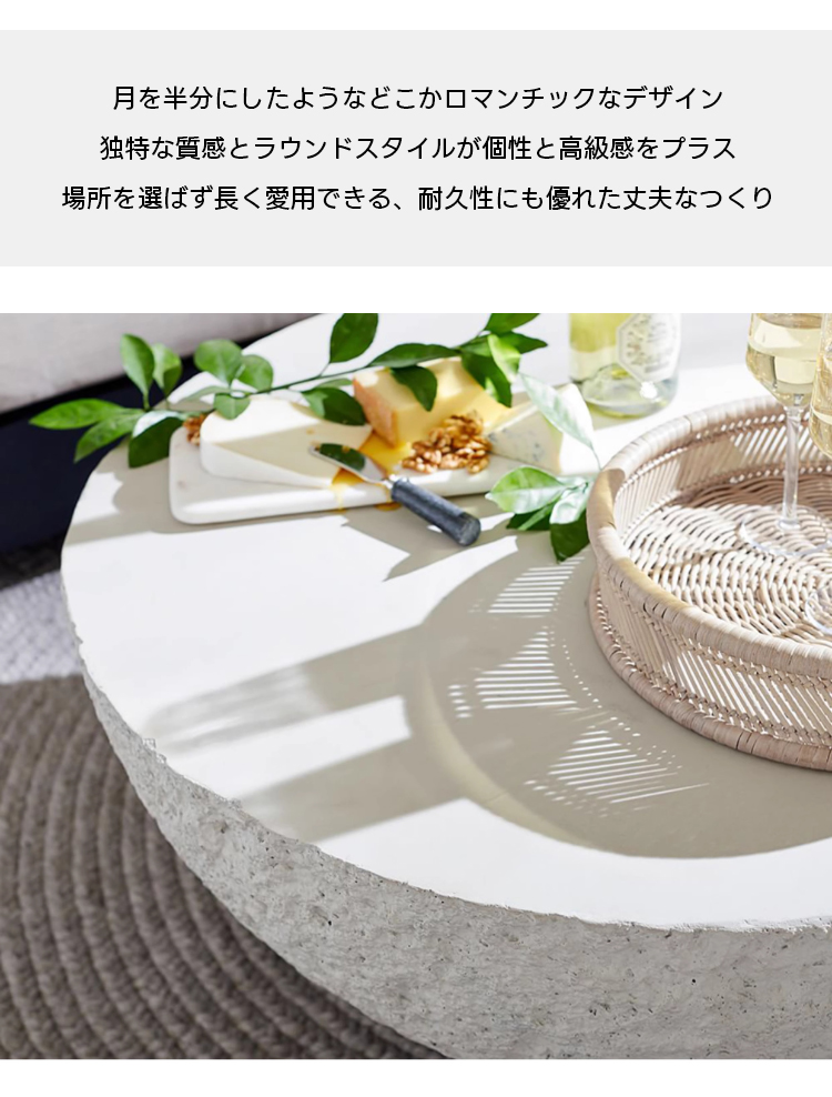 - 【モダンなデザインと高い機能性】:Cretoneコンクリートラウンドテーブルは、モダンなデザインと高い機能性を兼ね備えた一品です。コンクリートの無機質な美しさが、シンプルでありながらも存在感を放ち、どんなインテリアにもマッチします。