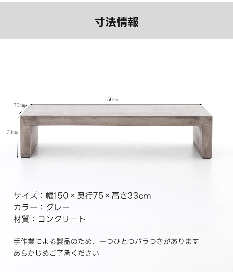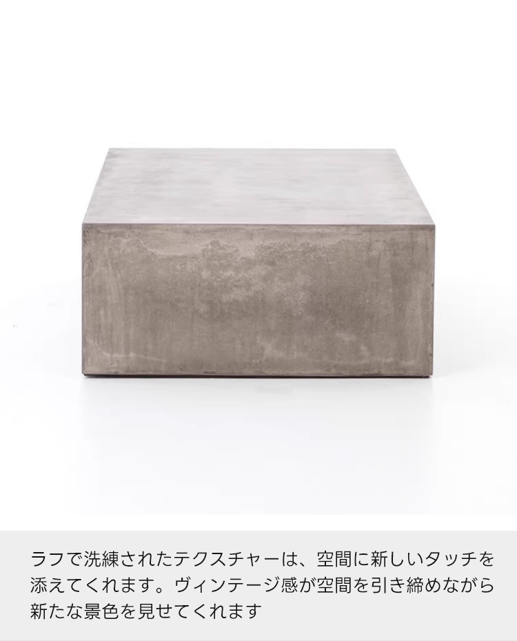 - 【洗練されたデザインと機能性】:このコンクリート製ローテーブルは、インダストリアルスタイルとヴィンテージ感を融合させた洗練されたデザインが特徴です。リビングに自然に溶け込み、スタイリッシュな空間を演出します。