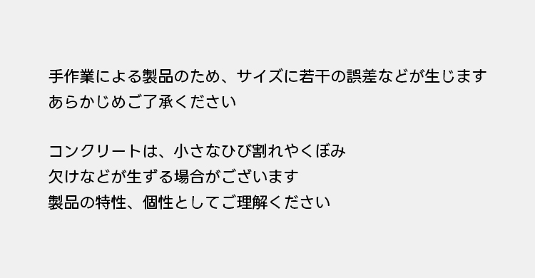 - 【手間いらずの完成品】:組み立て不要の完成品としてお届けしますので、到着後すぐにご利用いただけます。手作業による製品のため、サイズに若干の誤差やコンクリートの小さなひび割れなどが生じる場合がありますが、これも製品の個性として楽しんでいただけます。