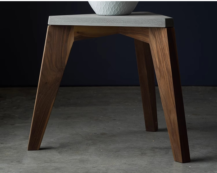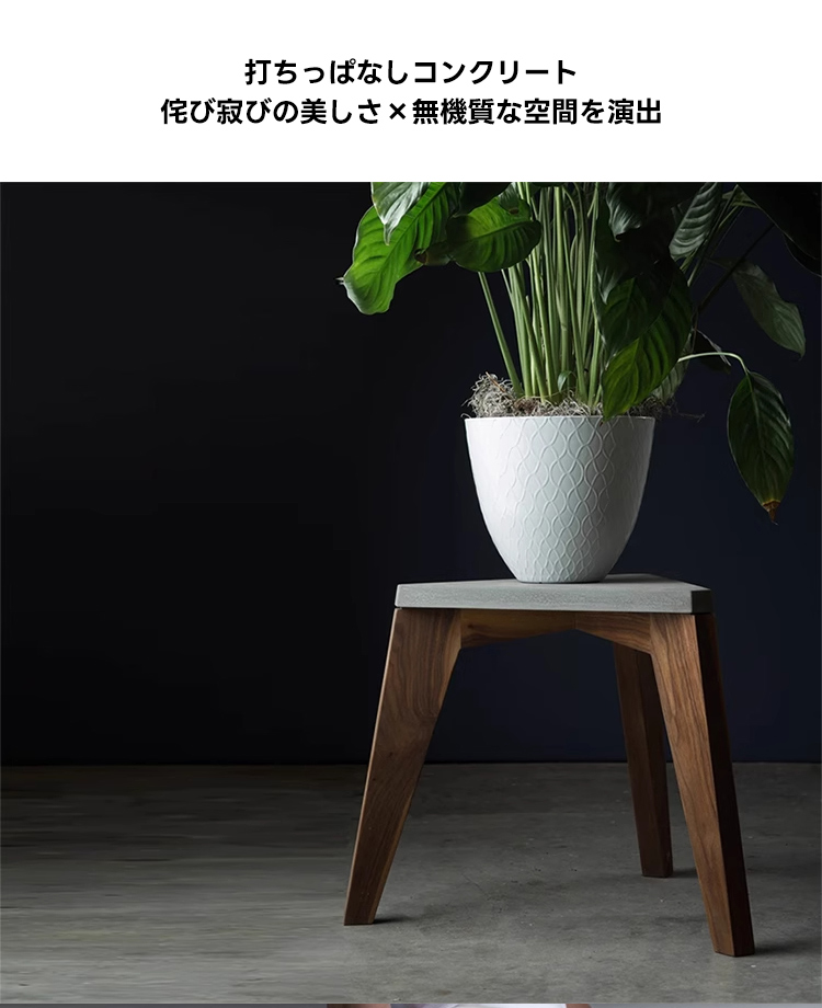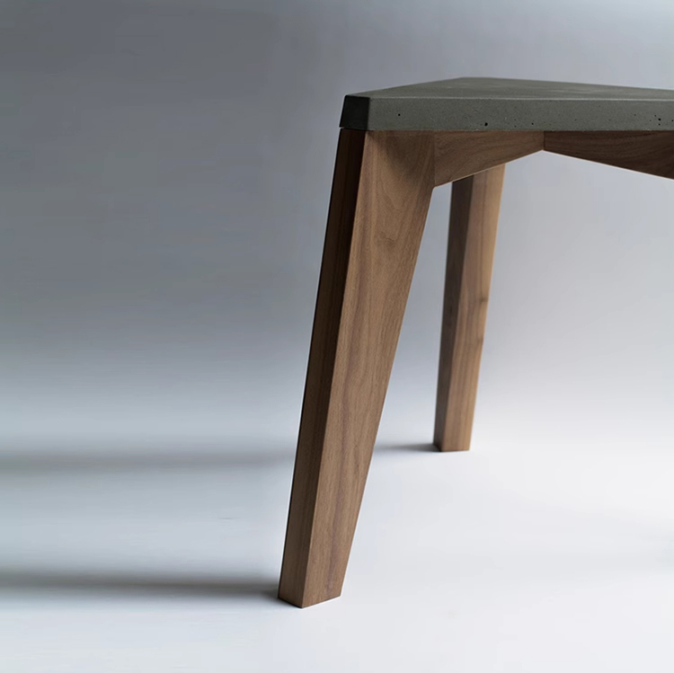 - 【高品質な素材と独特なデザイン】:コンクリートの天板とウォールナットの脚部が、耐久性とデザイン性を両立。三角形のシートデザインはユニークで視覚的なインパクトを与え、どんなインテリアにもマッチします。