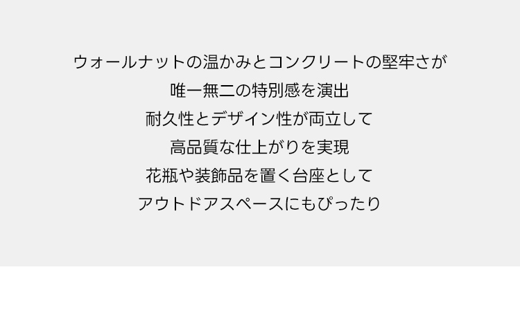 - 【快適な使用体験】:ライトグレーのコンクリートとナチュラルなウォールナットの色合いが、どんなインテリアにも調和し、スタイリッシュな生活をサポートします。組立品ですが、手作業による製品のため、サイズに若干の誤差が生じる場合があります。