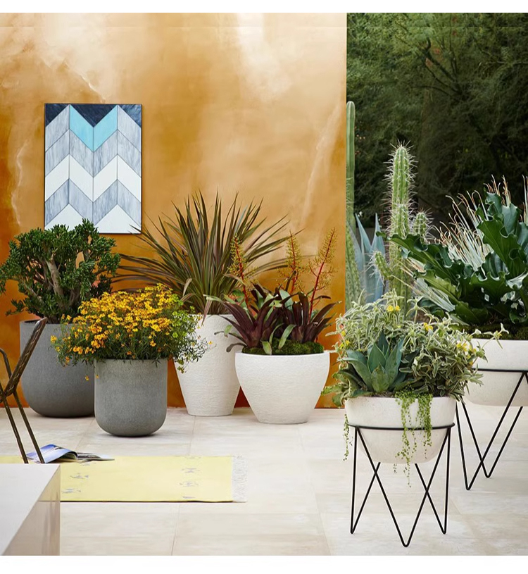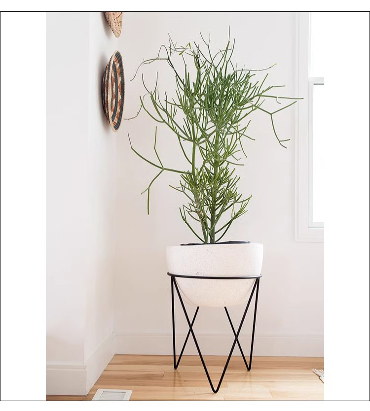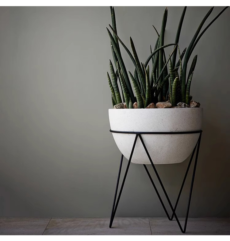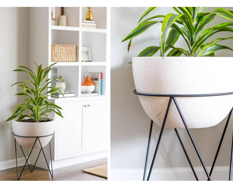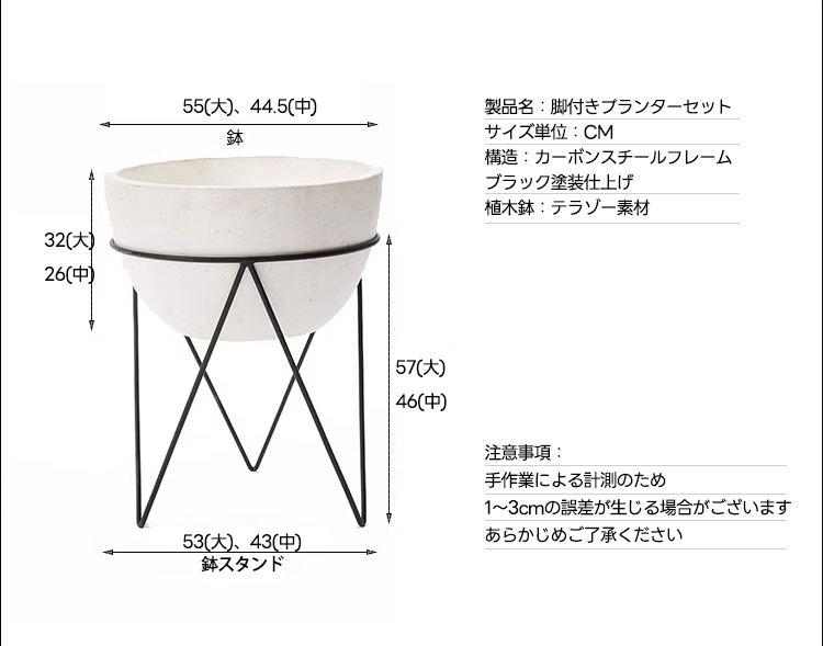 - 【高品質な素材とデザイン】プランターはテラゾー素材を使用し、耐久性に優れています。カーボンスチールのフレームに支えられた円形デザインは、洗練されたブラック塗装が施され、シンプルでありながら存在感があります。