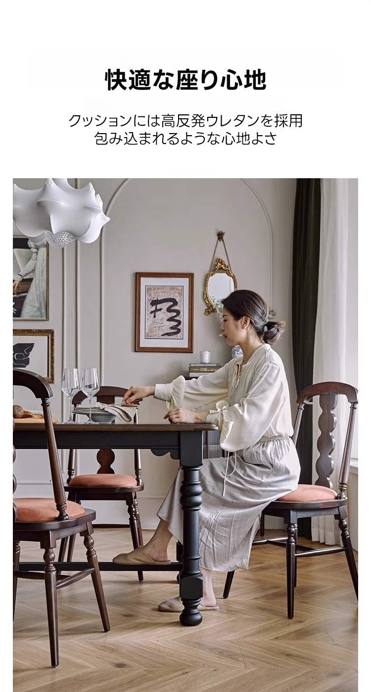 - 【快適な座り心地と高反発ウレタン】:エレガントダイニングチェアは、柔らかく高反発のウレタンを使用し、長時間座っても快適な座り心地を提供します。背もたれの高さと傾斜角が理想的なホールド感を実現し、どんな体型の方にもフィットします。