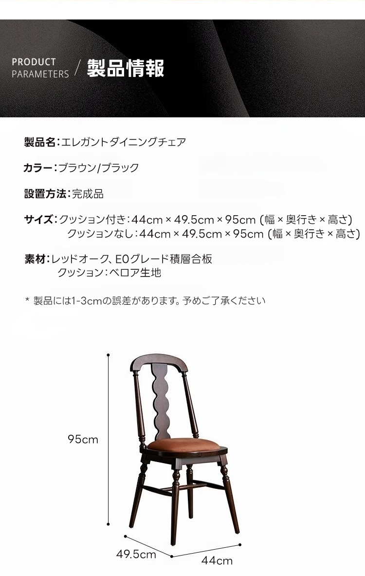 - 【多様なシーンにフィットするデザイン】:このダイニングチェアは、ダイニングルームだけでなく、リビングや書斎にもぴったりです。ブラウンとブラックの2色展開で、どんなインテリアにも自然に溶け込み、特別な時間を演出します。