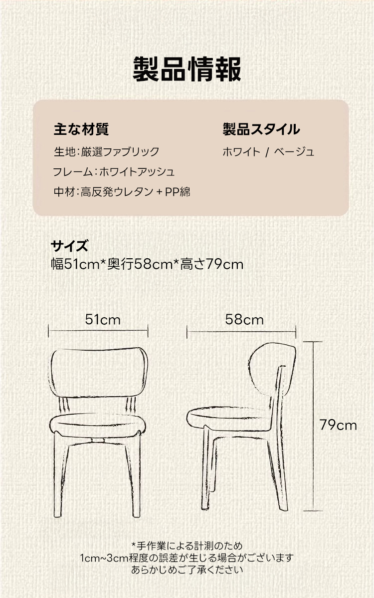 - 【カップルやファミリーに最適なサイズ】:幅51cm、奥行58cm、高さ79cmのコンパクトサイズで、ダイニングスペースを効率的に活用可能。完成品としてお届けするため、組み立ての手間がありません。