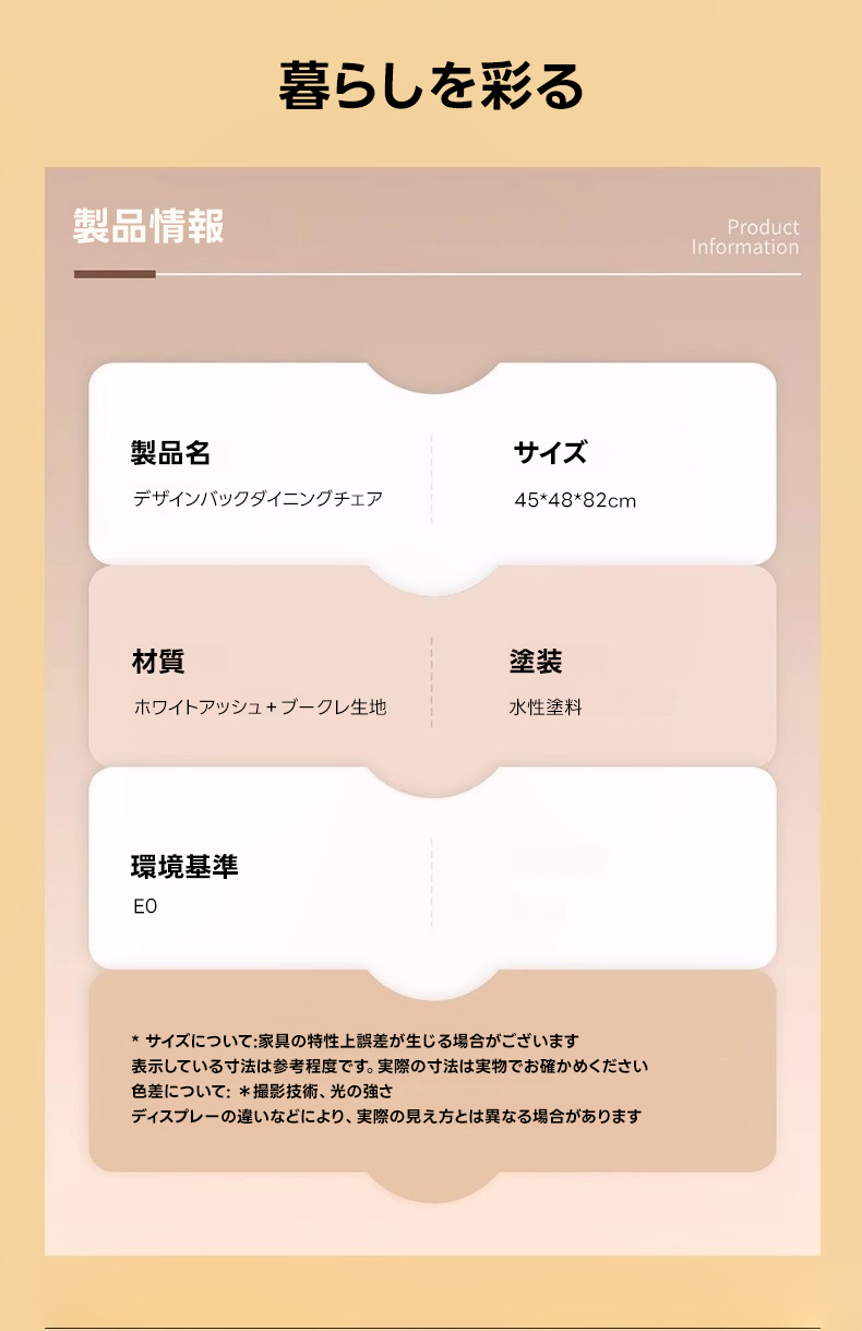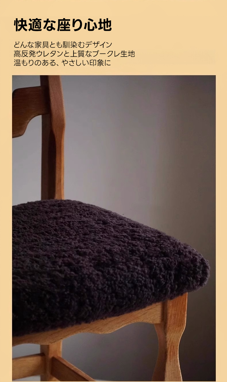- 【高品質な素材とデザイン】北米産ホワイトアッシュを使用した高品質な木材と、ブークレ生地による滑らかな質感が特徴です。環境基準E0をクリアしており、安全性も確保されています。