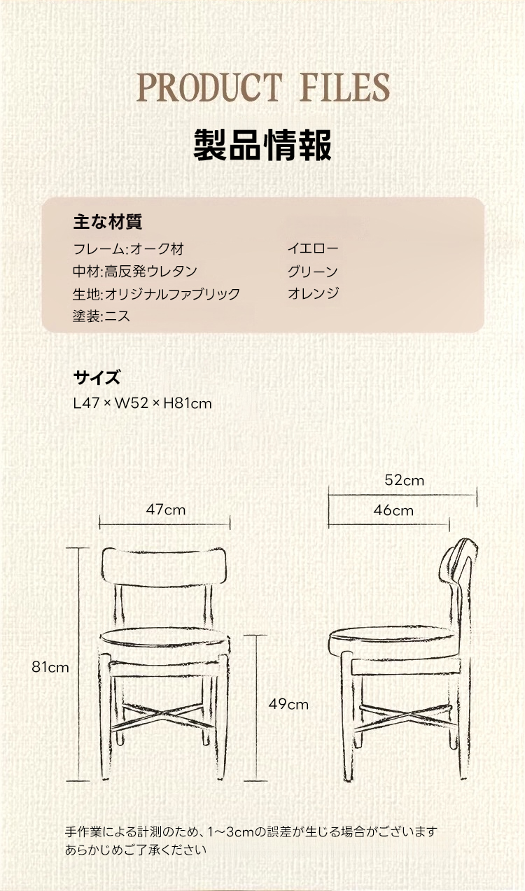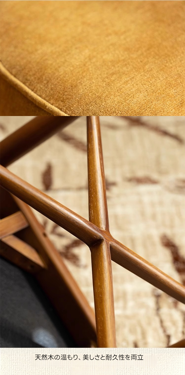 - 【高品質な素材&美しい仕上げ】フレームには耐久性のあるオーク材を使用し、ニス仕上げで自然の美しい木目を引き立てています。座面と背もたれには高級感と耐久性を兼ね備えたオリジナルファブリックを採用しています。