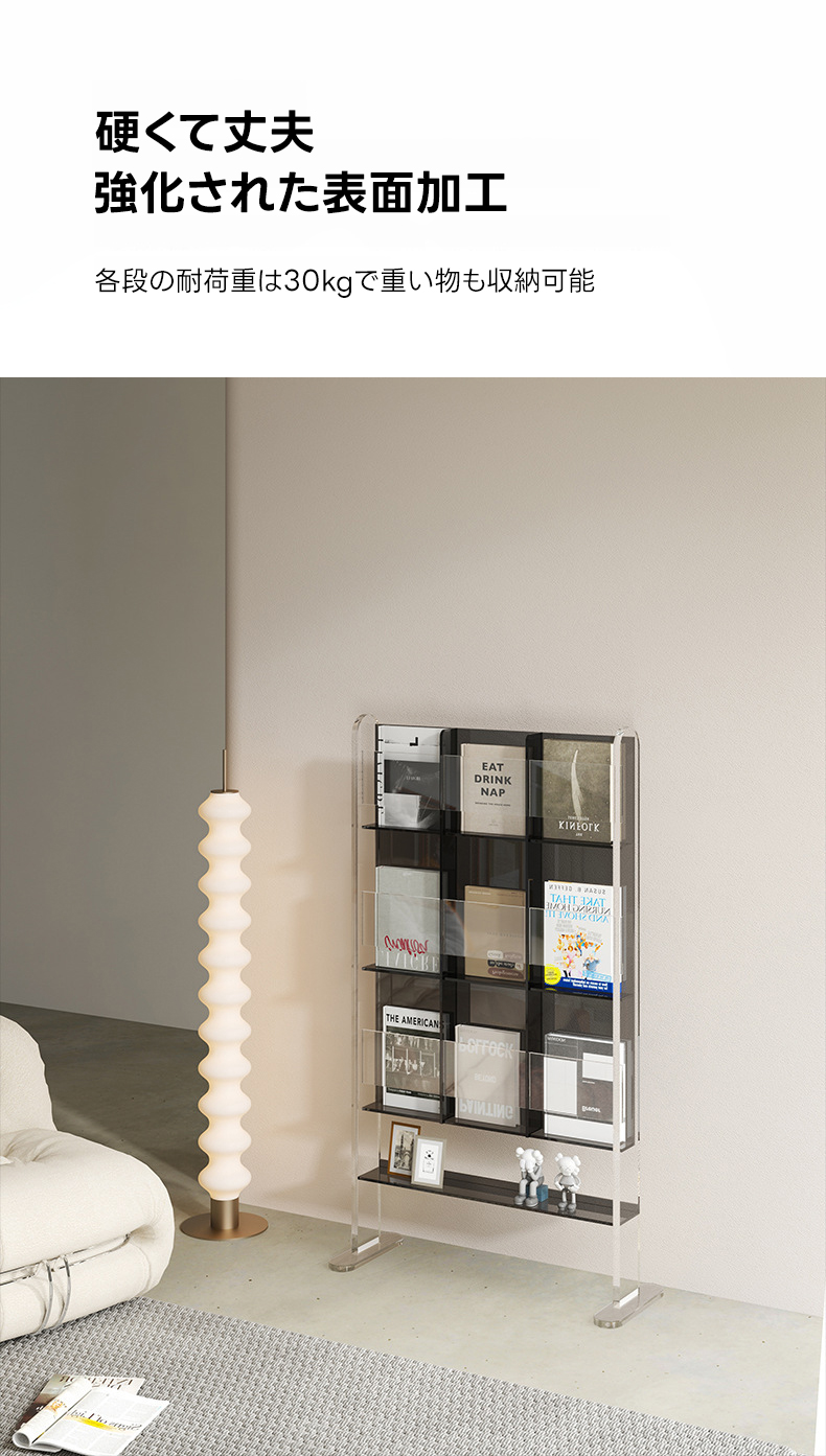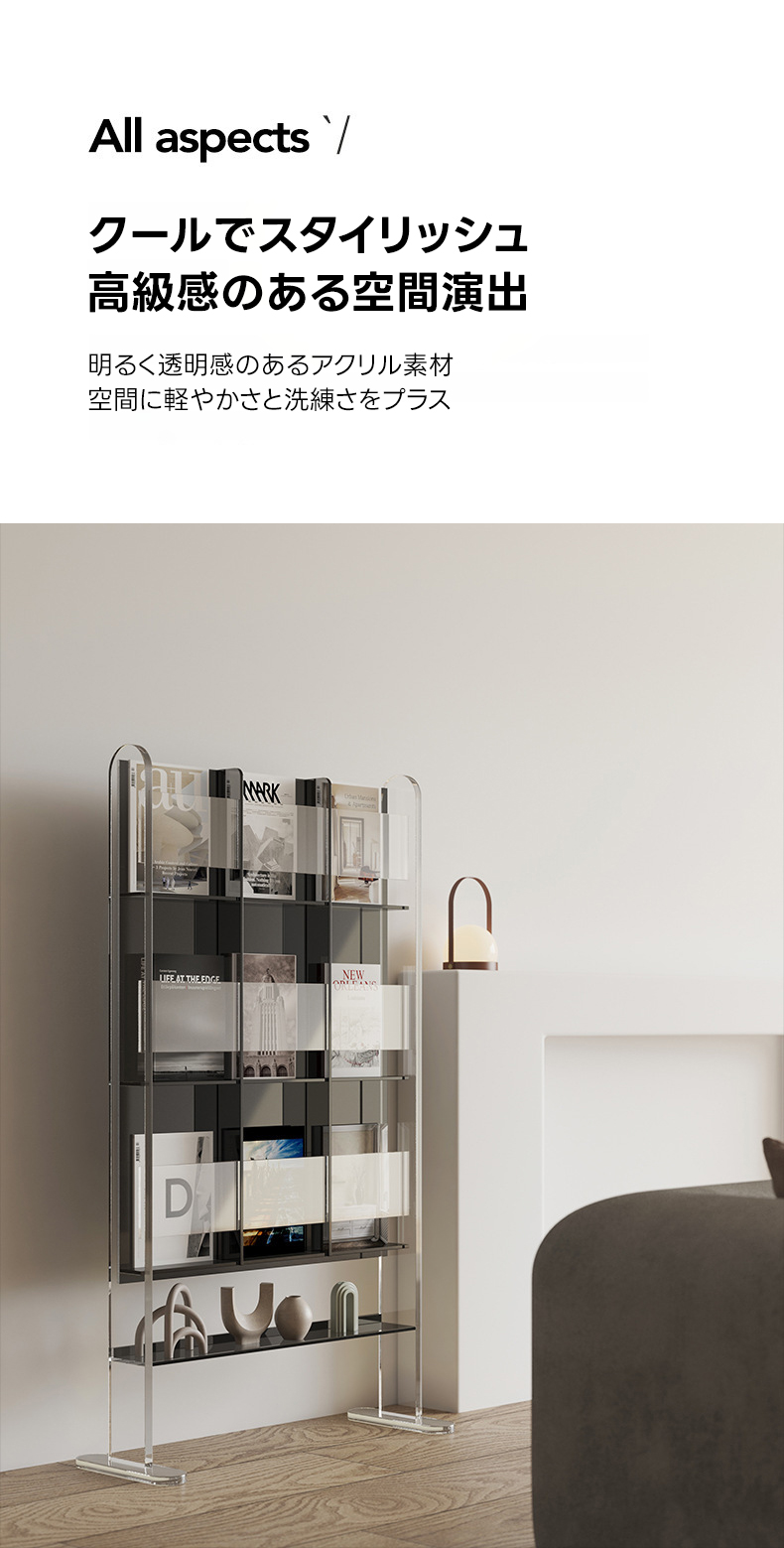 - 【高級感溢れるモダンデザイン】透明感のあるアクリル素材を使用したアクリルマガジンラックは、空間に軽やかさと洗練さをプラス。お部屋を一瞬でおしゃれな空間に変える芸術性の高いデザインです。