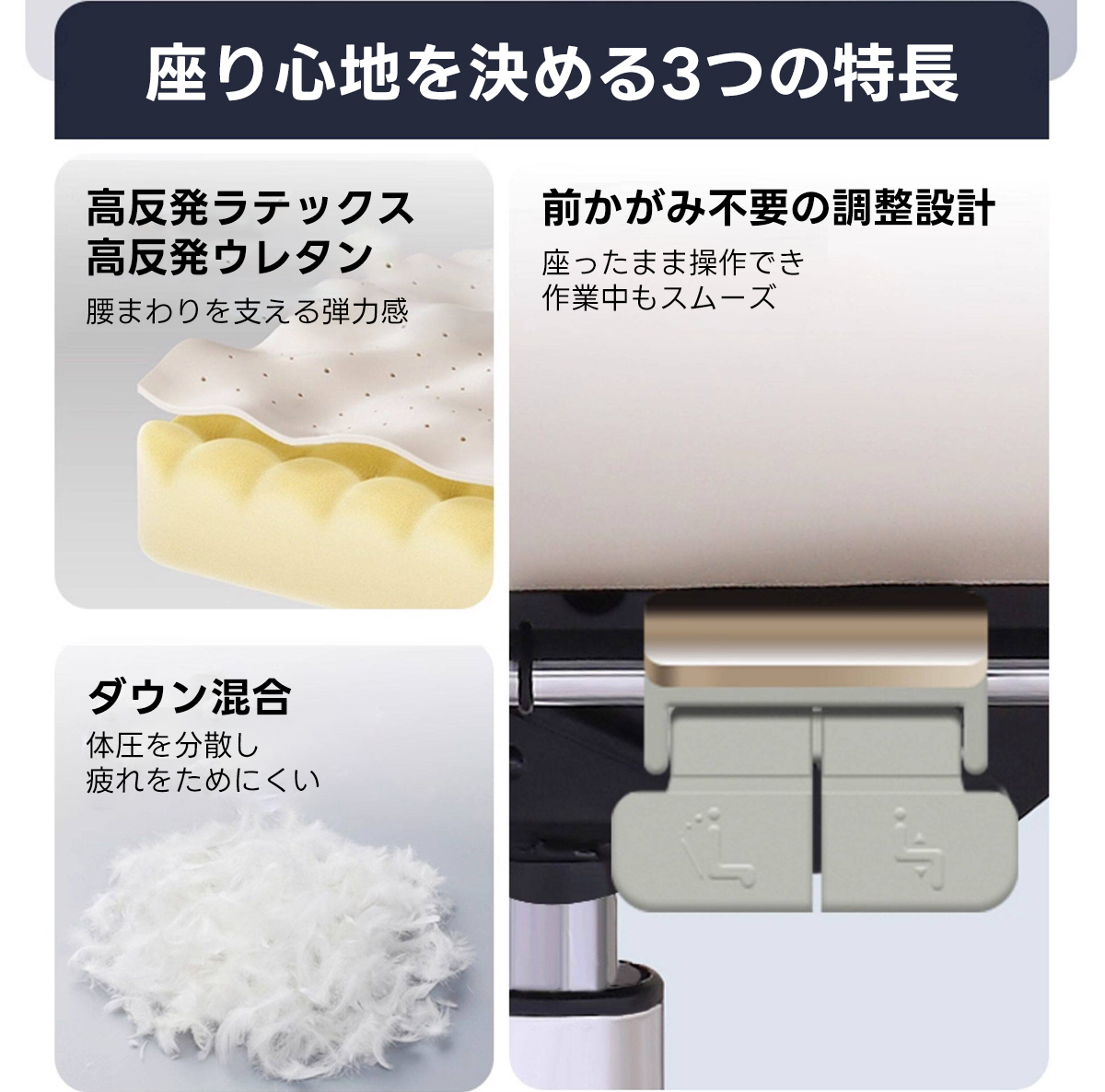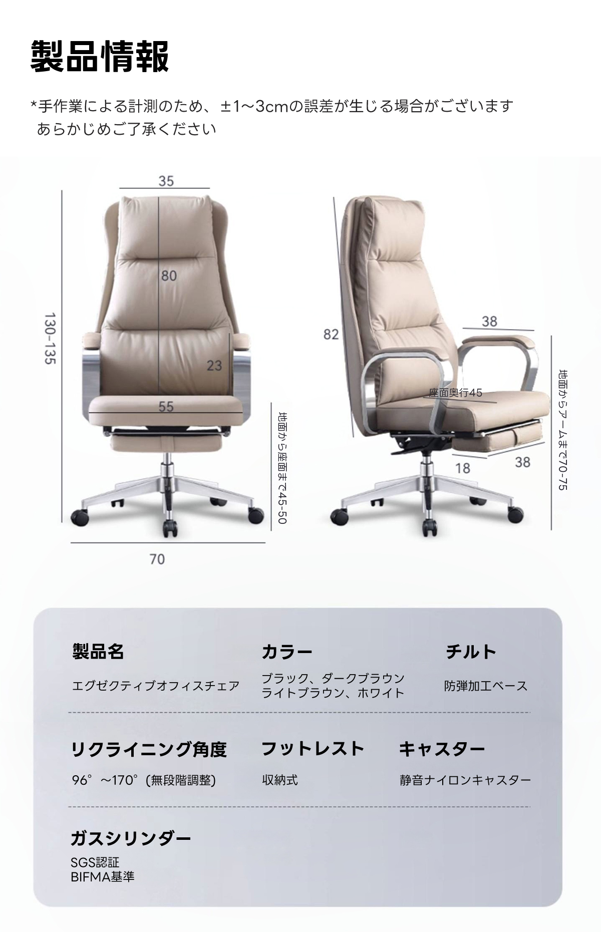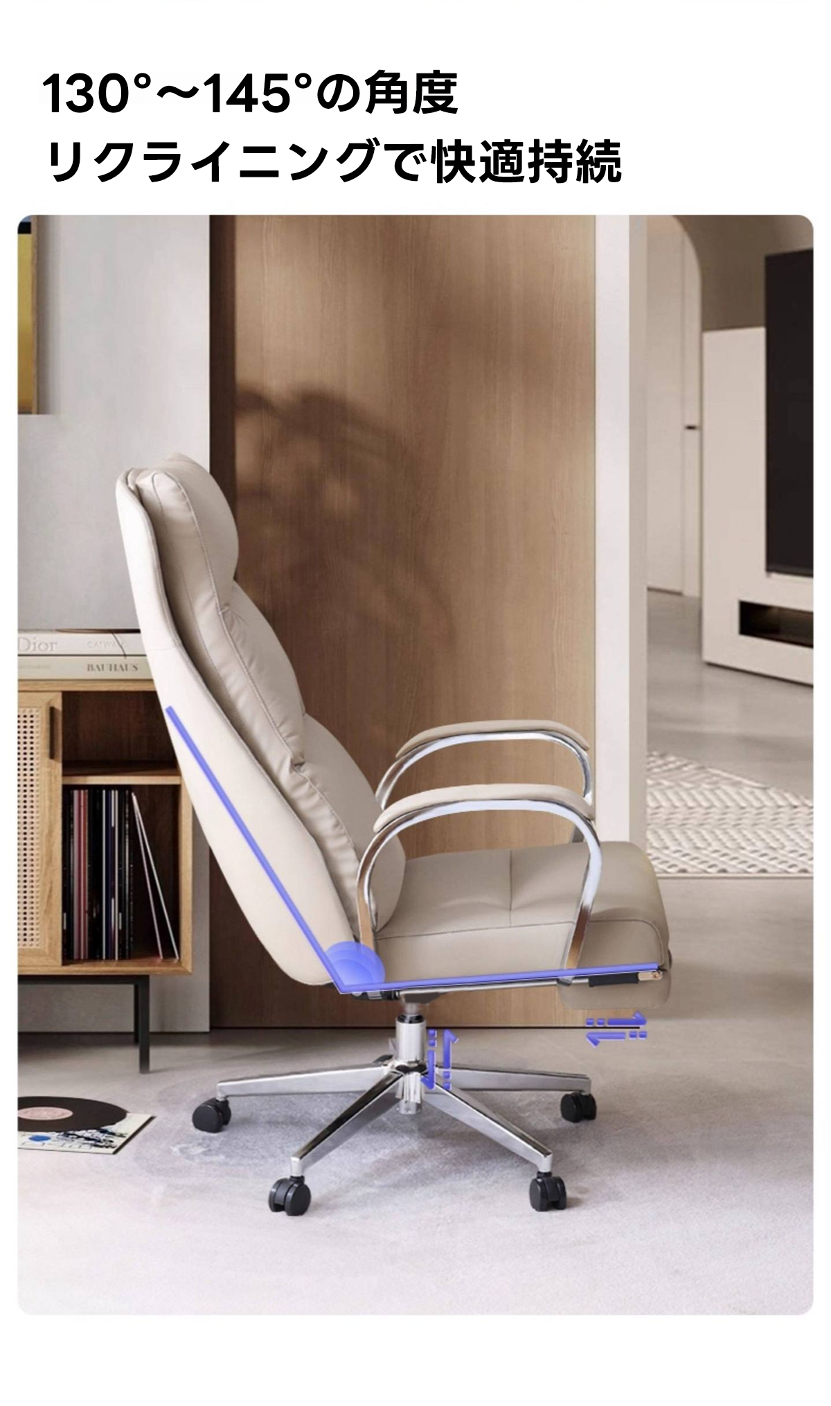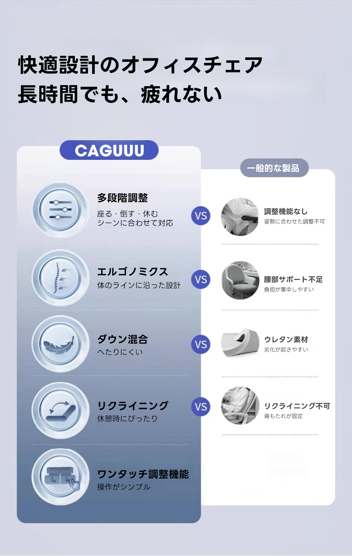 - 【多用途リクライニング機能】:96°から最大170°まで調整可能なリクライニング機能を搭載。仕事中の集中時から休憩時のリラックスまで、様々なシーンに対応します。
