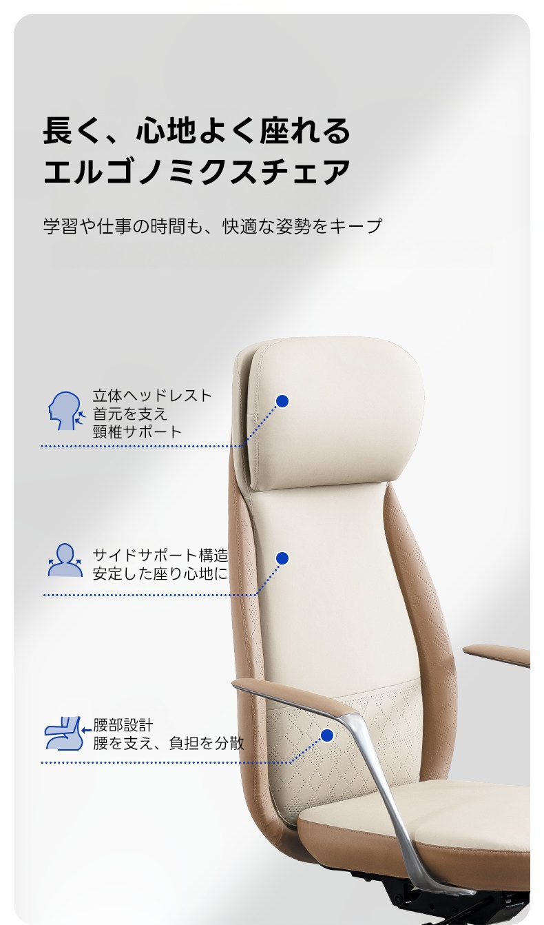 - 【高品質素材とデザイン】ベージュの合皮素材を使用し、見た目にも高級感があります。通気性のあるデザインで、長時間座っても蒸れにくく、快適な使用感を実現します。