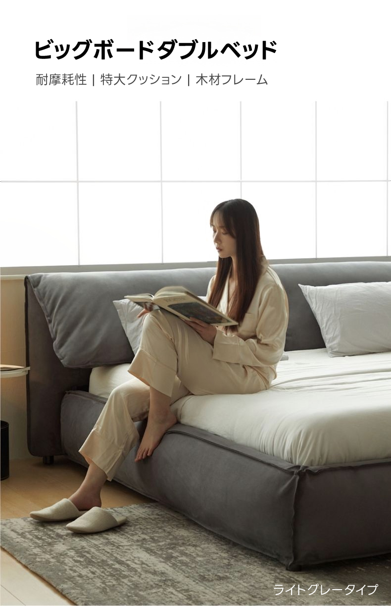 - 【一人暮らしやカップルに最適なサイズ】ワイドダブルベッドとキングベッドのサイズ展開で、寝室のスペースに合わせて選べます。長方形の形状で、どんなインテリアにもマッチし、モカとライトグレーの2色からお選びいただけます。