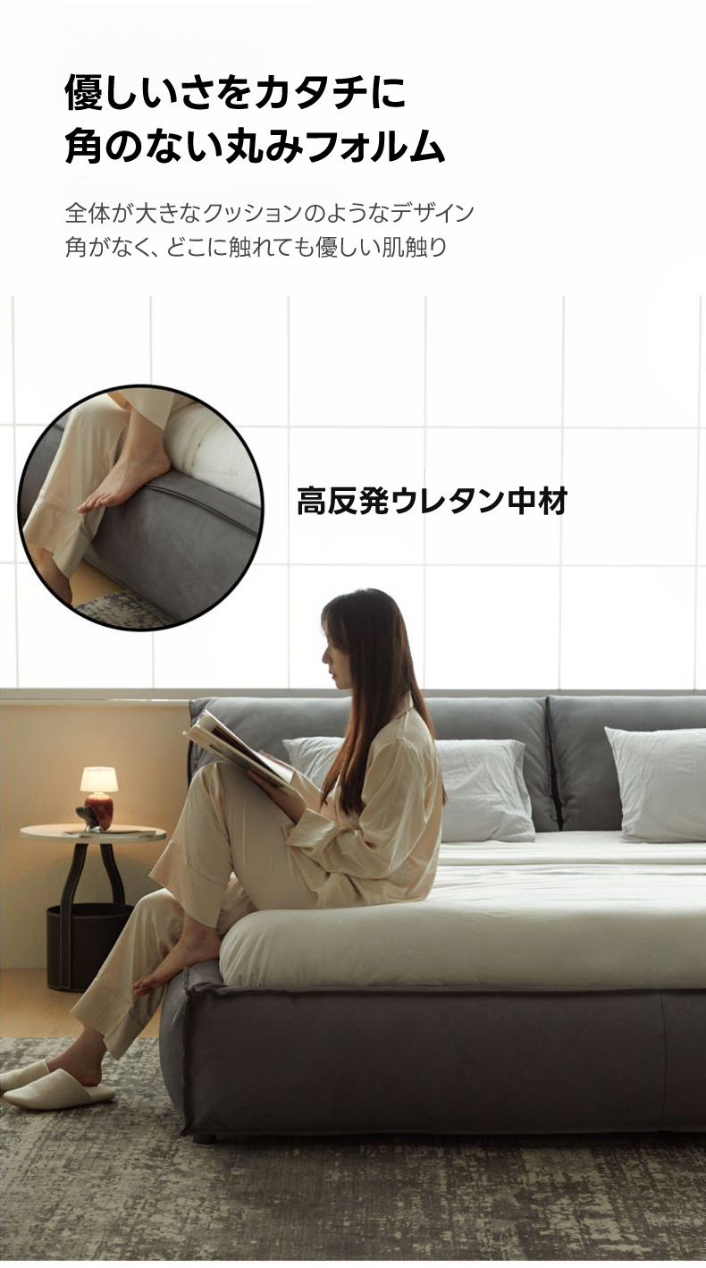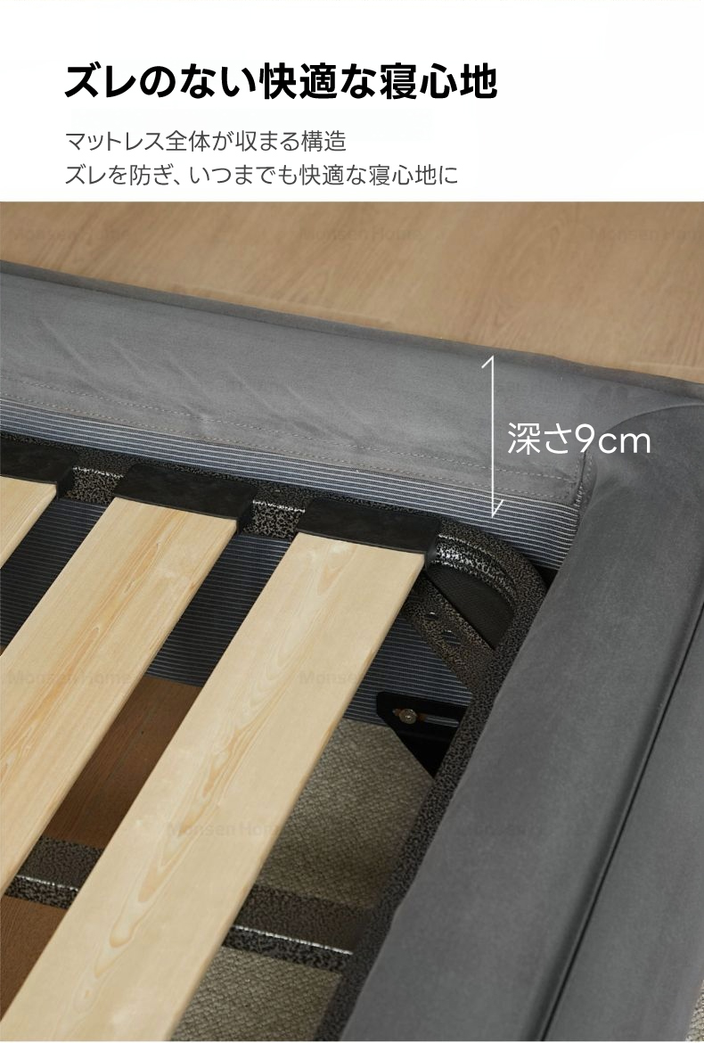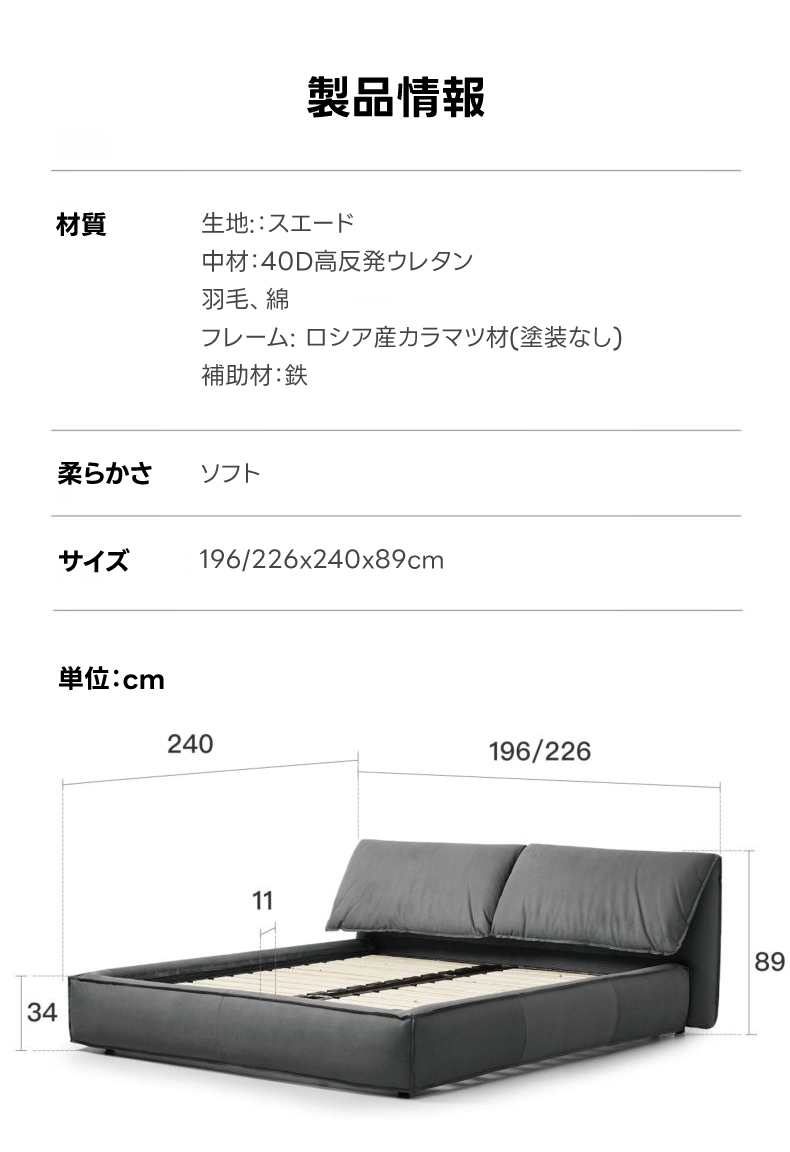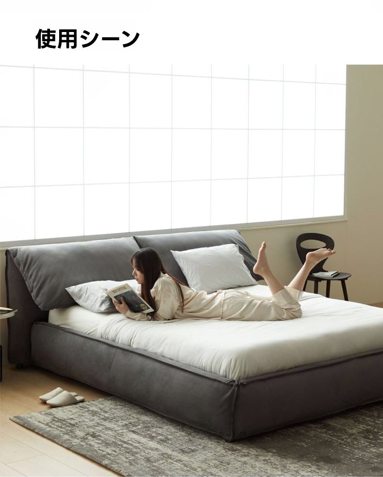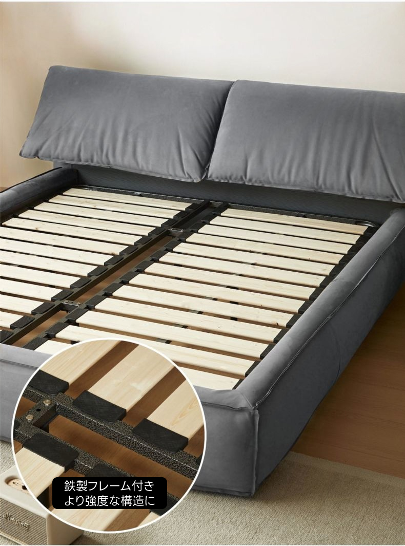- 【高品質な素材とデザイン】フレームには耐久性に優れたロシア産カラマツ材を使用し、スエード生地が高級感を演出します。どこに触れても優しい肌触りで、長く使える設計です。