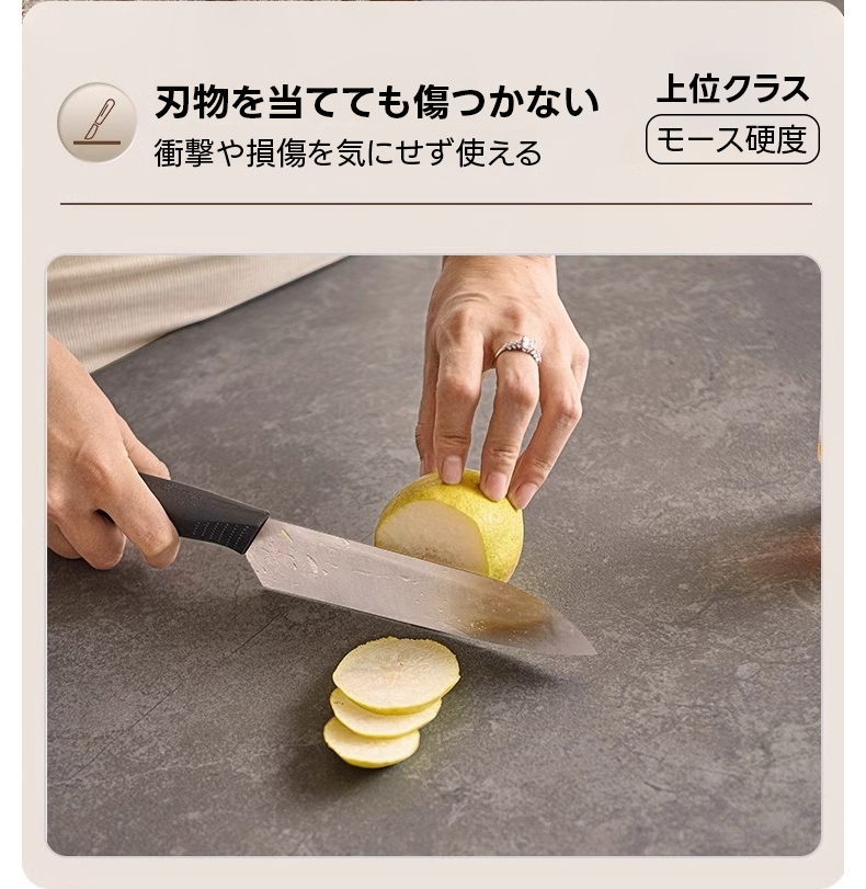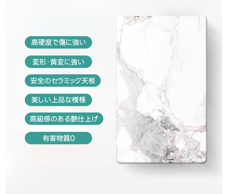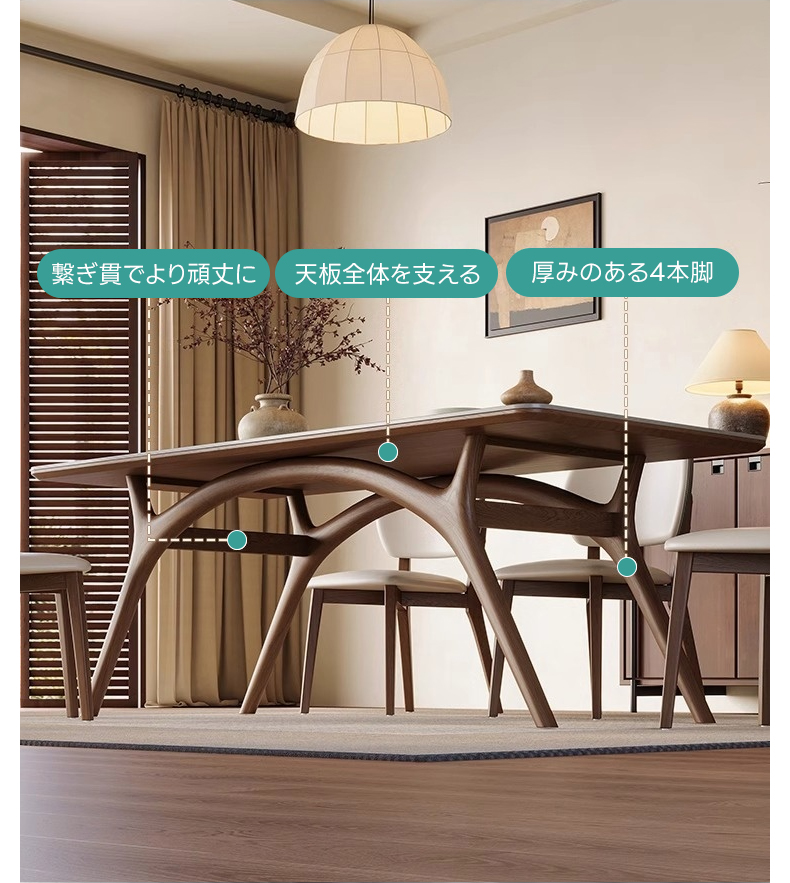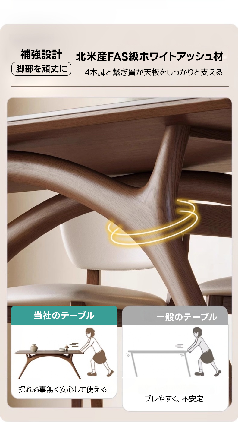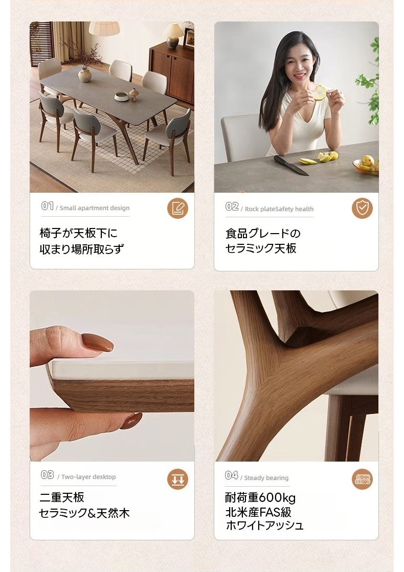 - 【高耐久性と安全性】このダイニングテーブルは、耐荷重600kgの頑丈な構造を持ち、食品グレードのセラミック天板を採用しています。モース硬度が高く、刃物を当てても傷がつきにくい設計です。また、2000℃までの耐熱性を備えており、熱々の鍋を直接置いても問題ありません。
