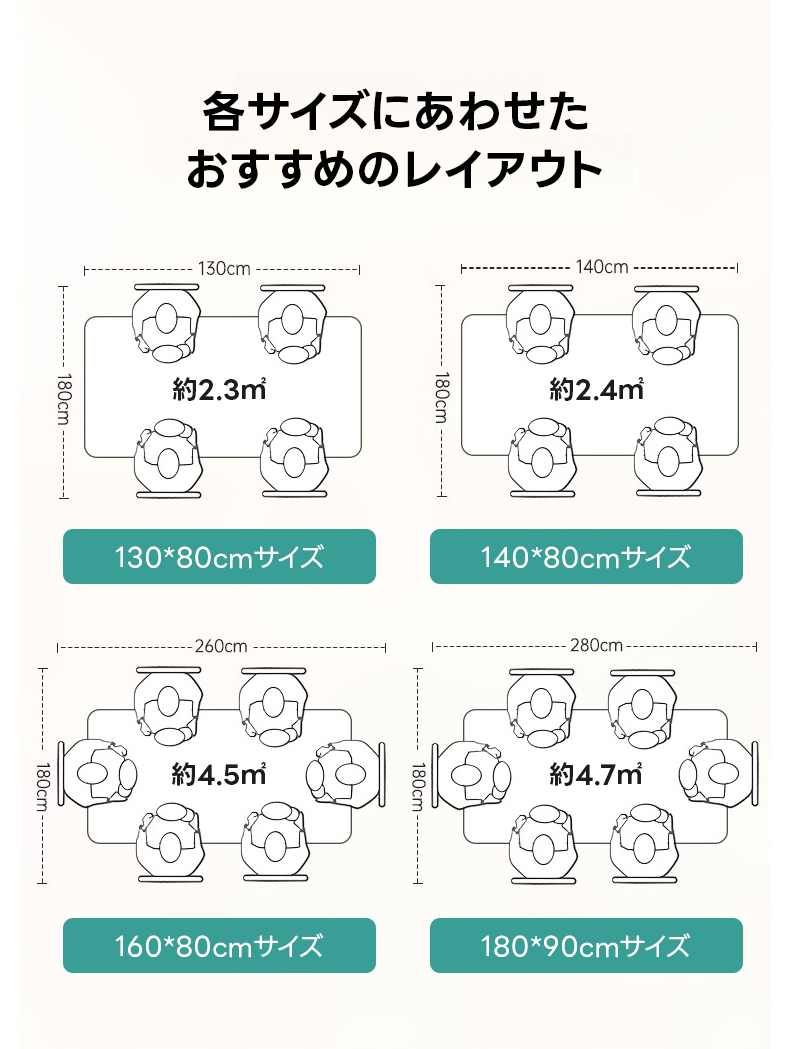 - 【快適な使用体験】防水性が高く、シミやカビの心配がなく、簡単に清掃できます。これにより、日常の使用においても安心してお使いいただけます。スタイリッシュなデザインと実用性を兼ね備えており、ダイニングルームの中心に置くのにぴったりです。