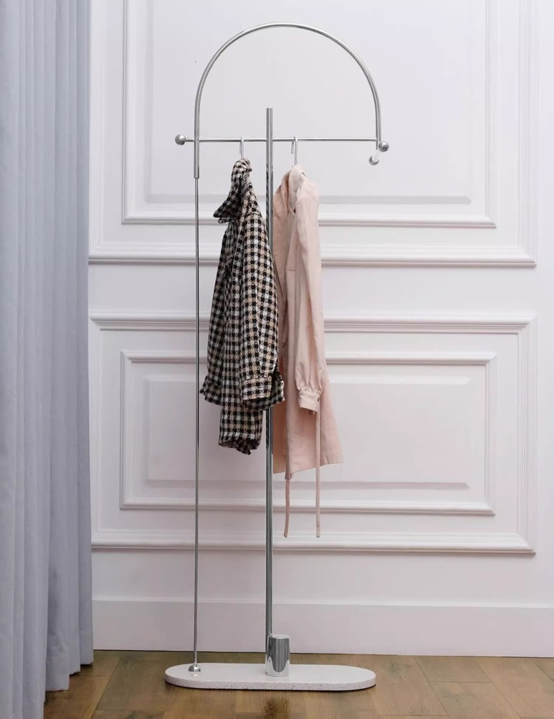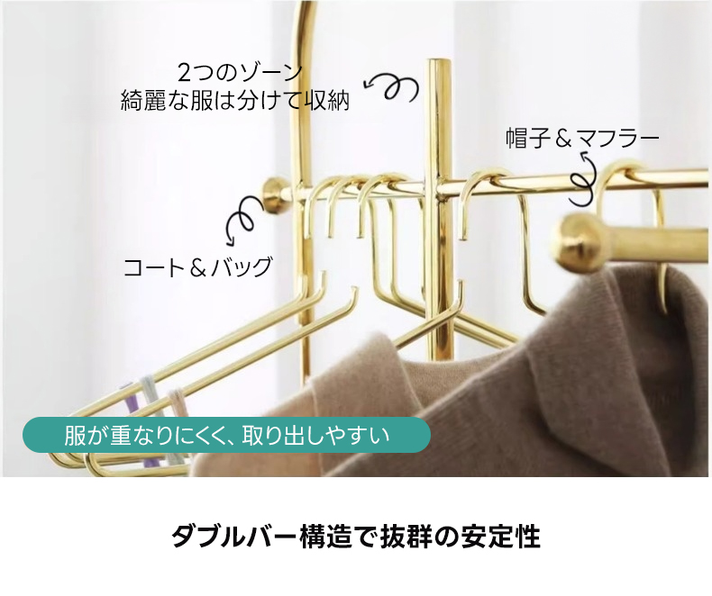 - 【優れた収納力と安定性】このステンレススリムハンガーラックは、コートやバッグ、スカーフ、帽子などをすっきりと収納できる2つのゾーンに分かれています。ダブルバー構造により、安定性が高く、服が重なりにくく取り出しやすい設計です。