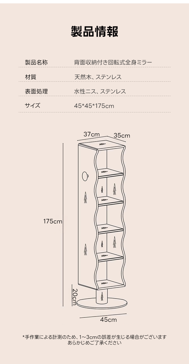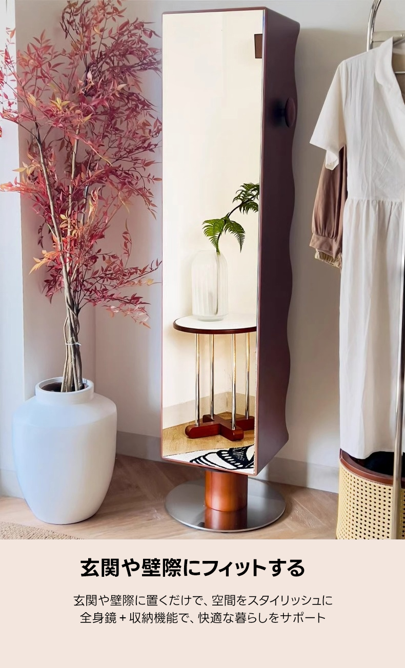 背面収納付き回転式全身ミラー