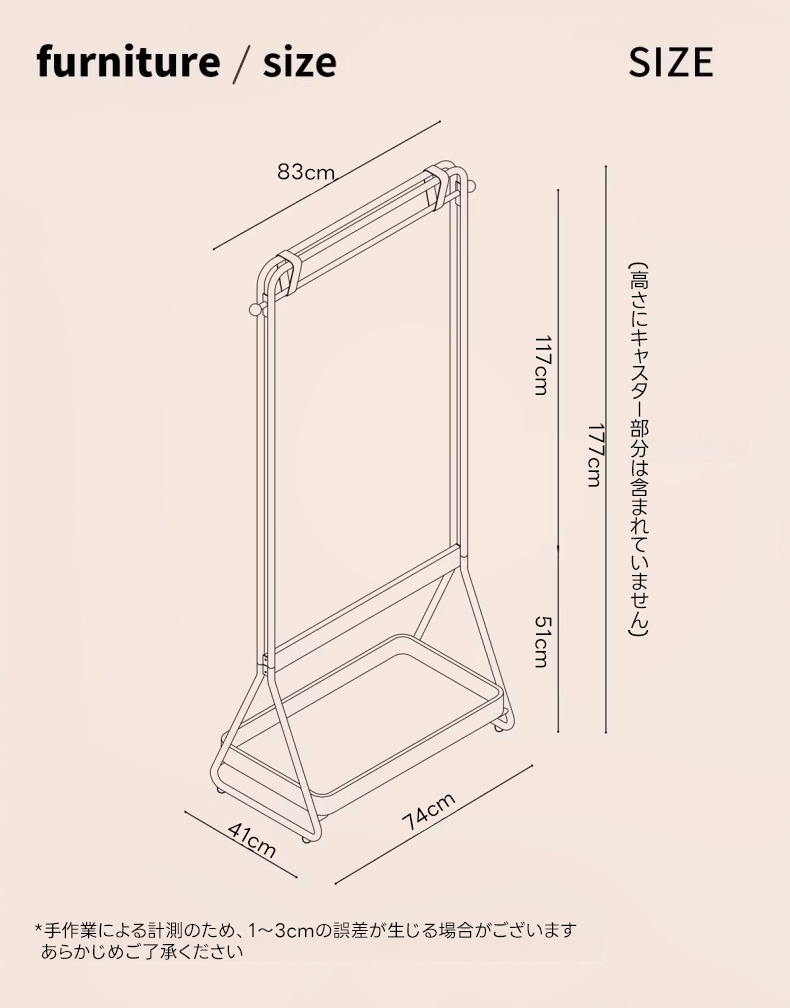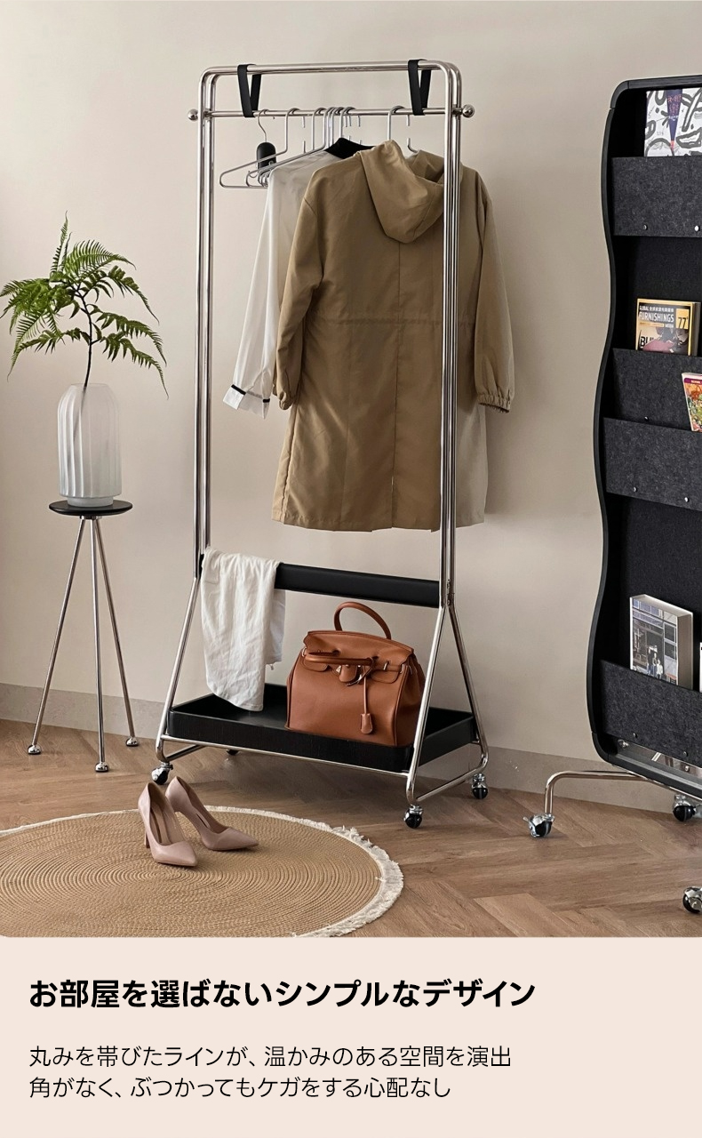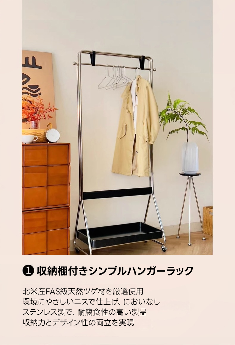 収納棚付きシンプルハンガーラック