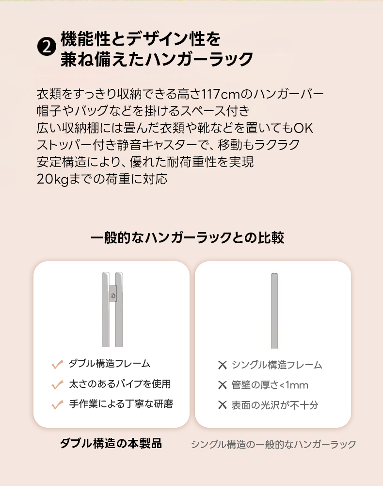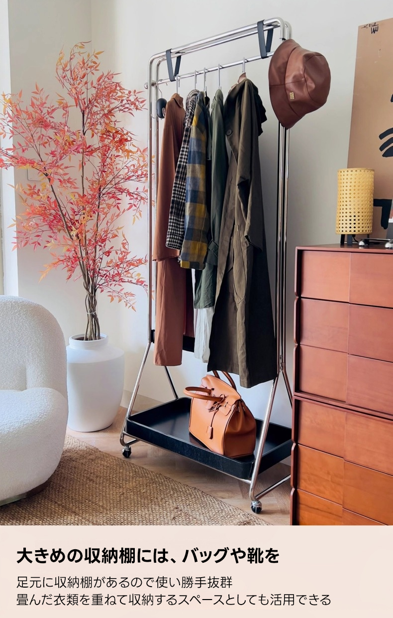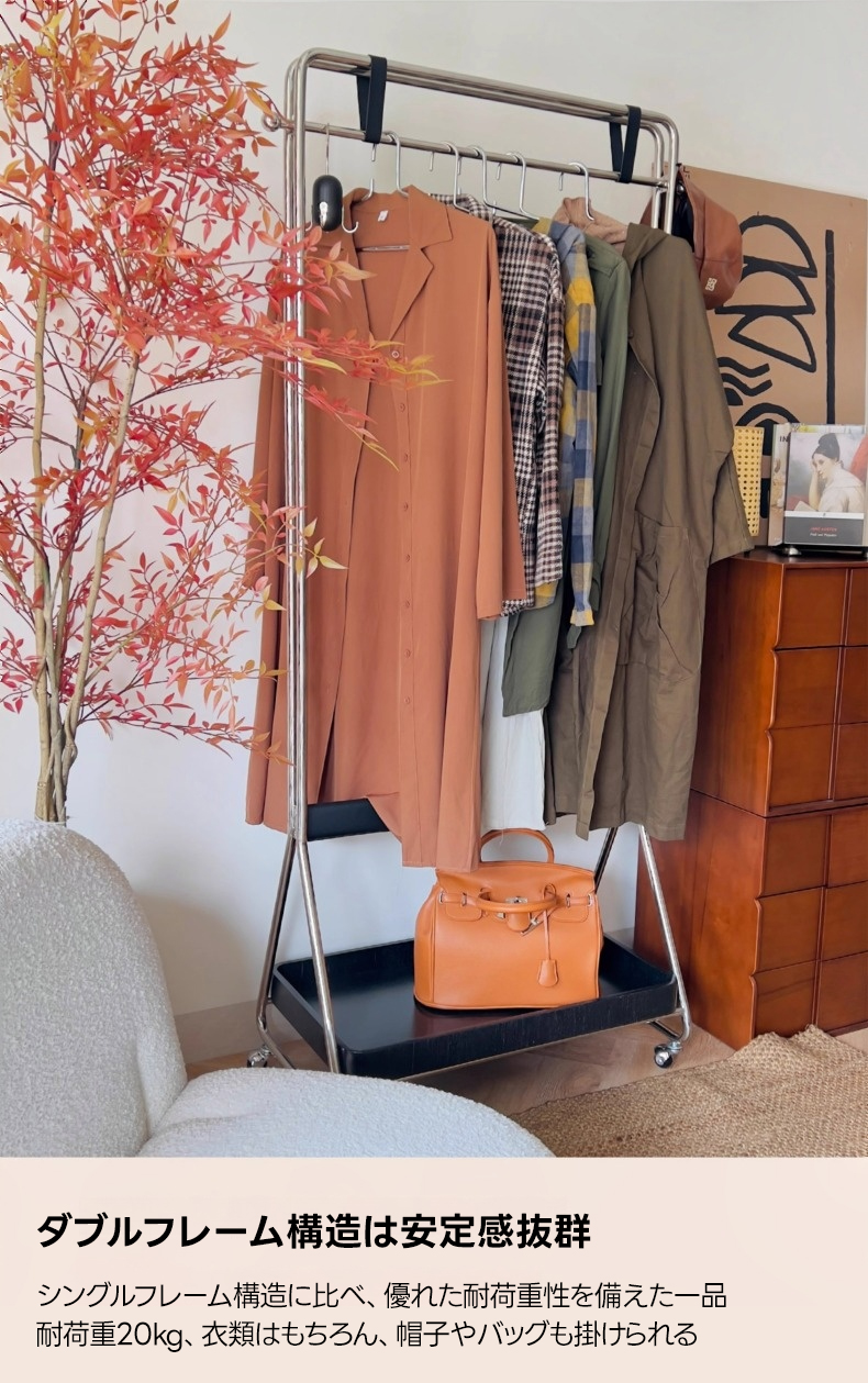 - 【優れた収納力と機能性】:このシンプルモダンなハンガーラックは、117cmのハンガーバーと広い収納棚を備え、衣類や小物をすっきり収納できます。帽子やバッグを掛けるスペースもあり、最大20kgまでの荷重に対応しています。