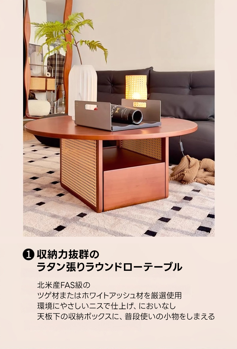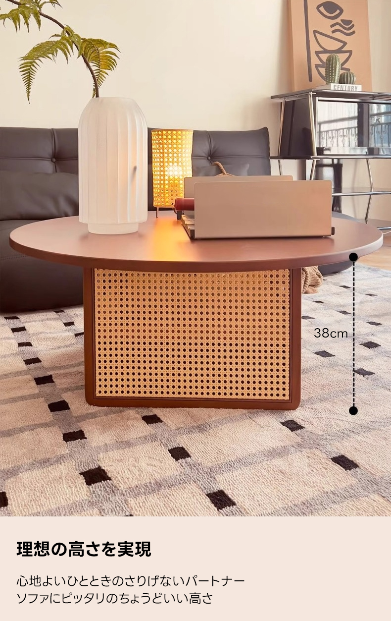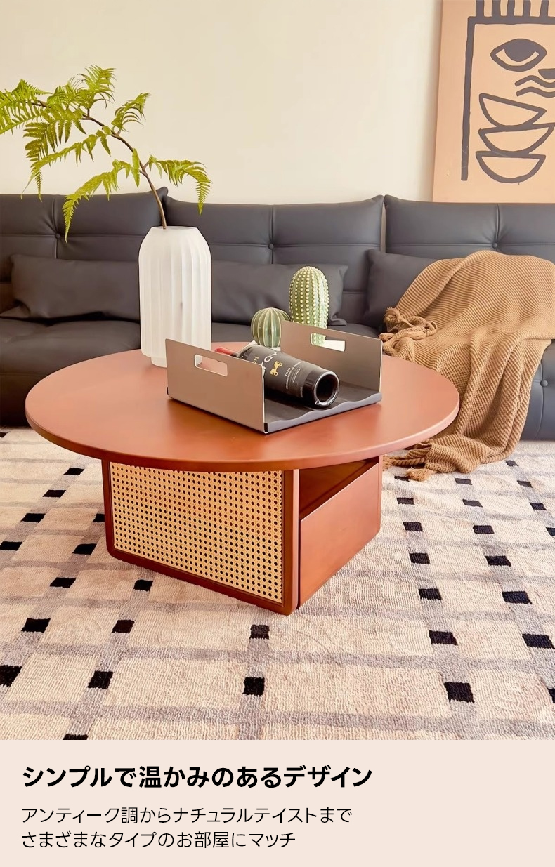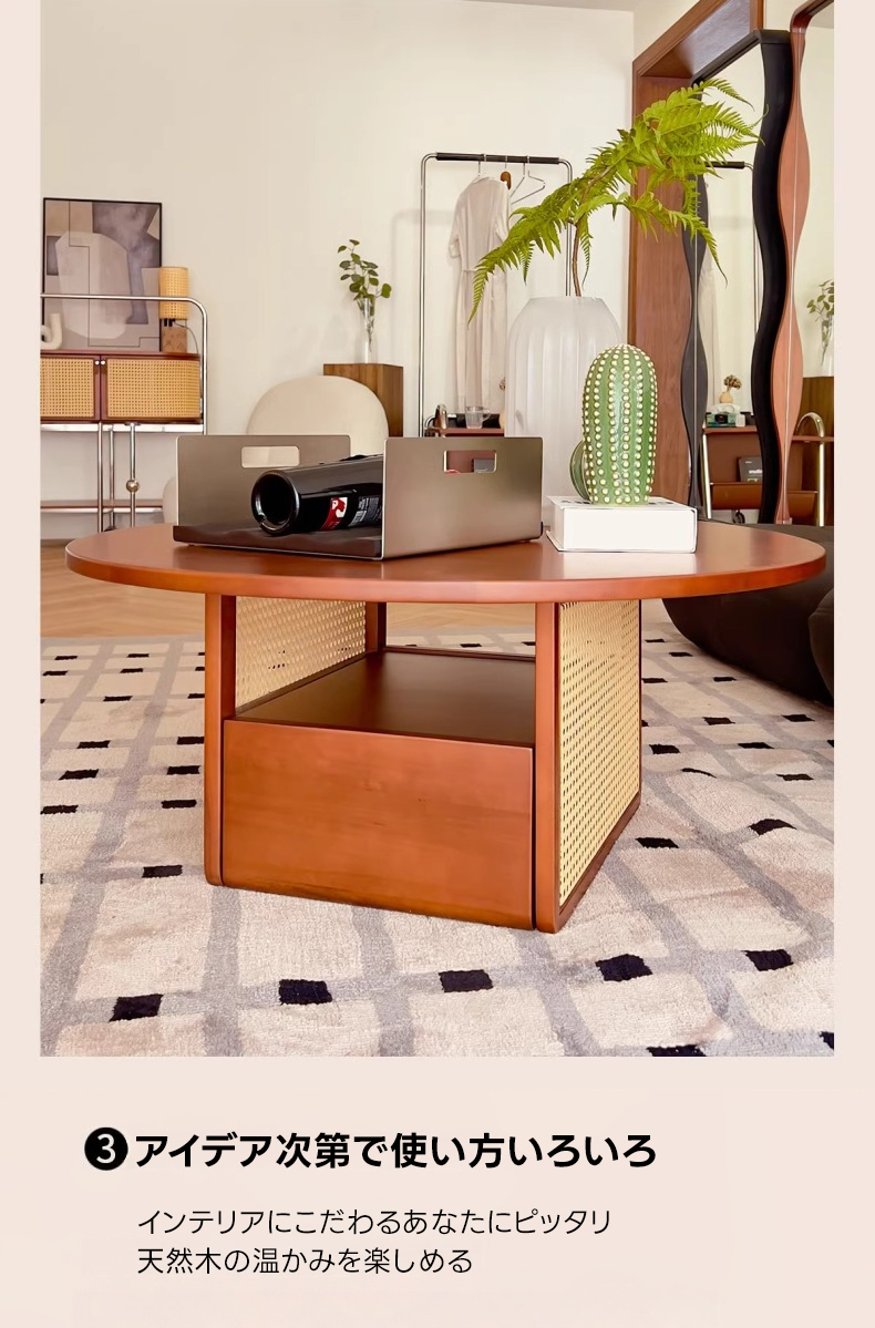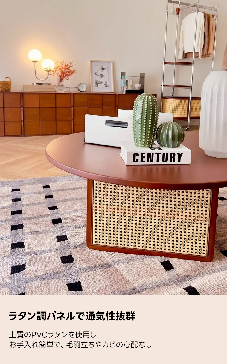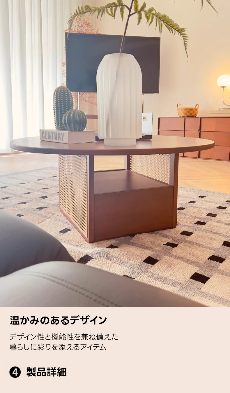 - 【多機能なリビングテーブル】:ラタン調木製円形テーブルは、リビングや寝室での使用に最適です。ダークブラウンの色合いが落ち着いた雰囲気を演出し、カップルやファミリーにもぴったりなサイズ感です。