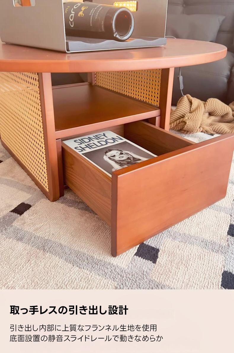 - 【快適な使用体験】:大容量の収納スペースがあり、雑誌やリモコンなどをすっきりと収納できます。取っ手レスの引き出し設計で、静音スライドレールによりスムーズに開閉でき、使い勝手が良いです。