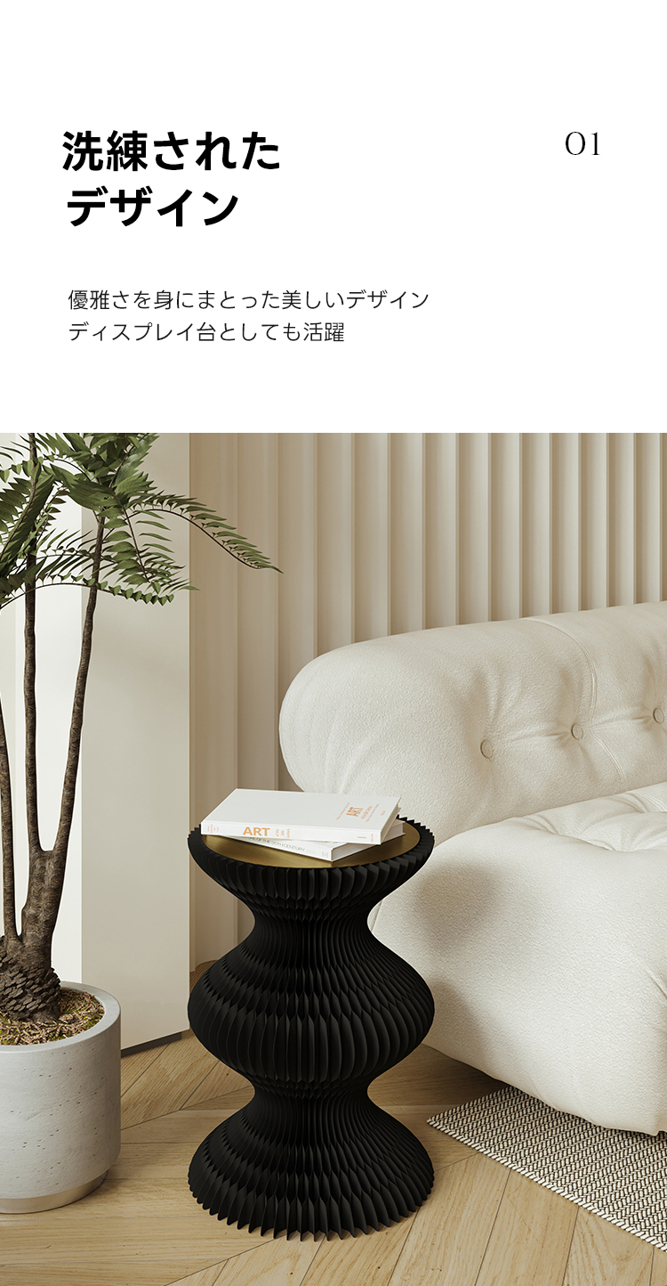 - 【独特なフォルムとデザイン】このサイドテーブルは、シンプルモダンなインテリアにぴったりのデザインです。オルガンのような美しいラインが特徴で、視覚的にも楽しめます。ラウンドデザインが柔らかい印象を与え、どんなインテリアにもマッチします。