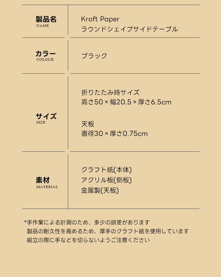 Kraft Paper ラウンドシェイプサイドテーブル