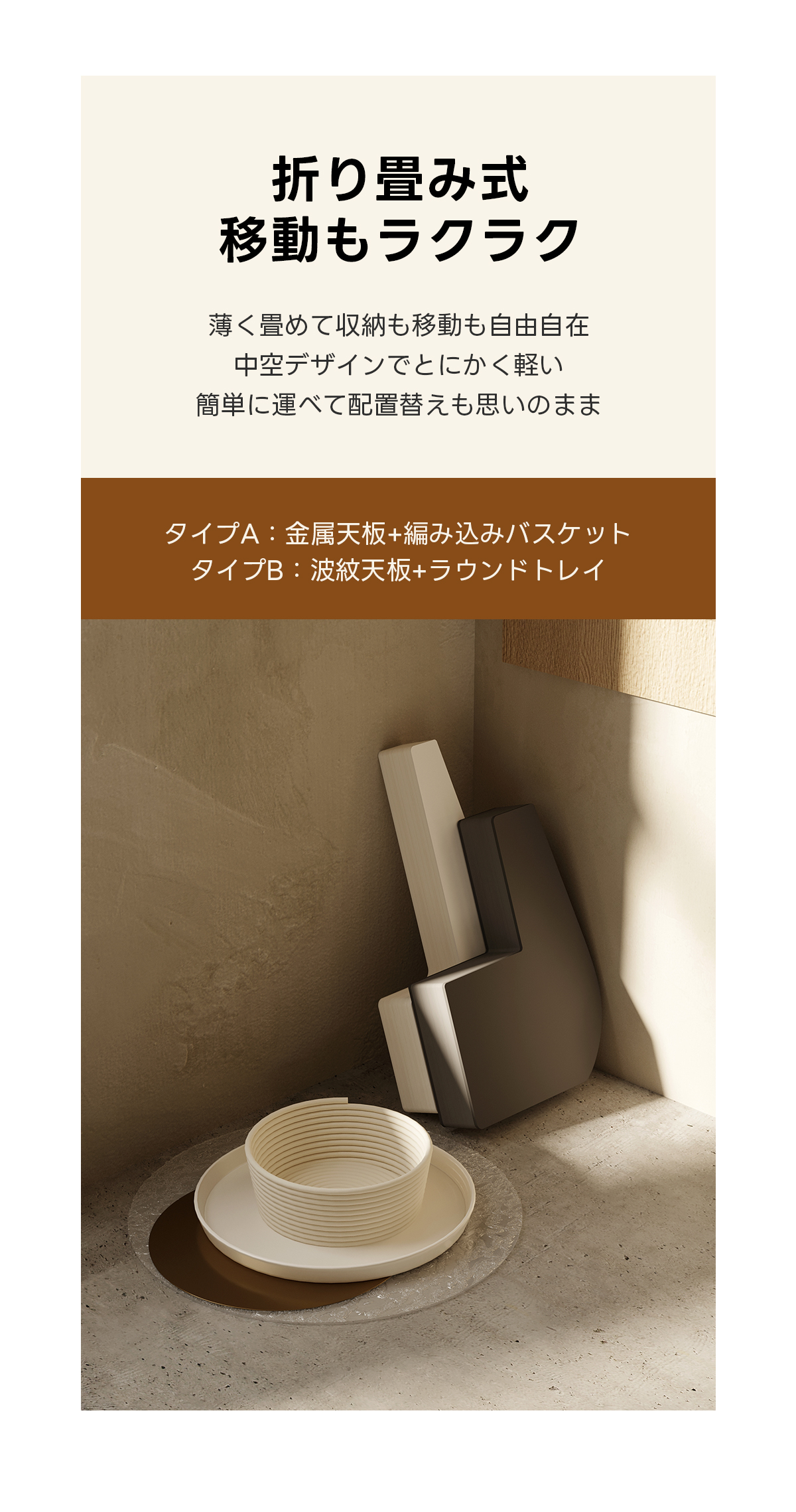 - 【ユーザー体験と価値】:内部には小物を整理できるスペースがあり、上部には雑貨やディスプレイを飾ることができる2層構造です。コンパクト設計で、折りたたみ可能なスリムデザインにより、場所を取らずに収納できます。
