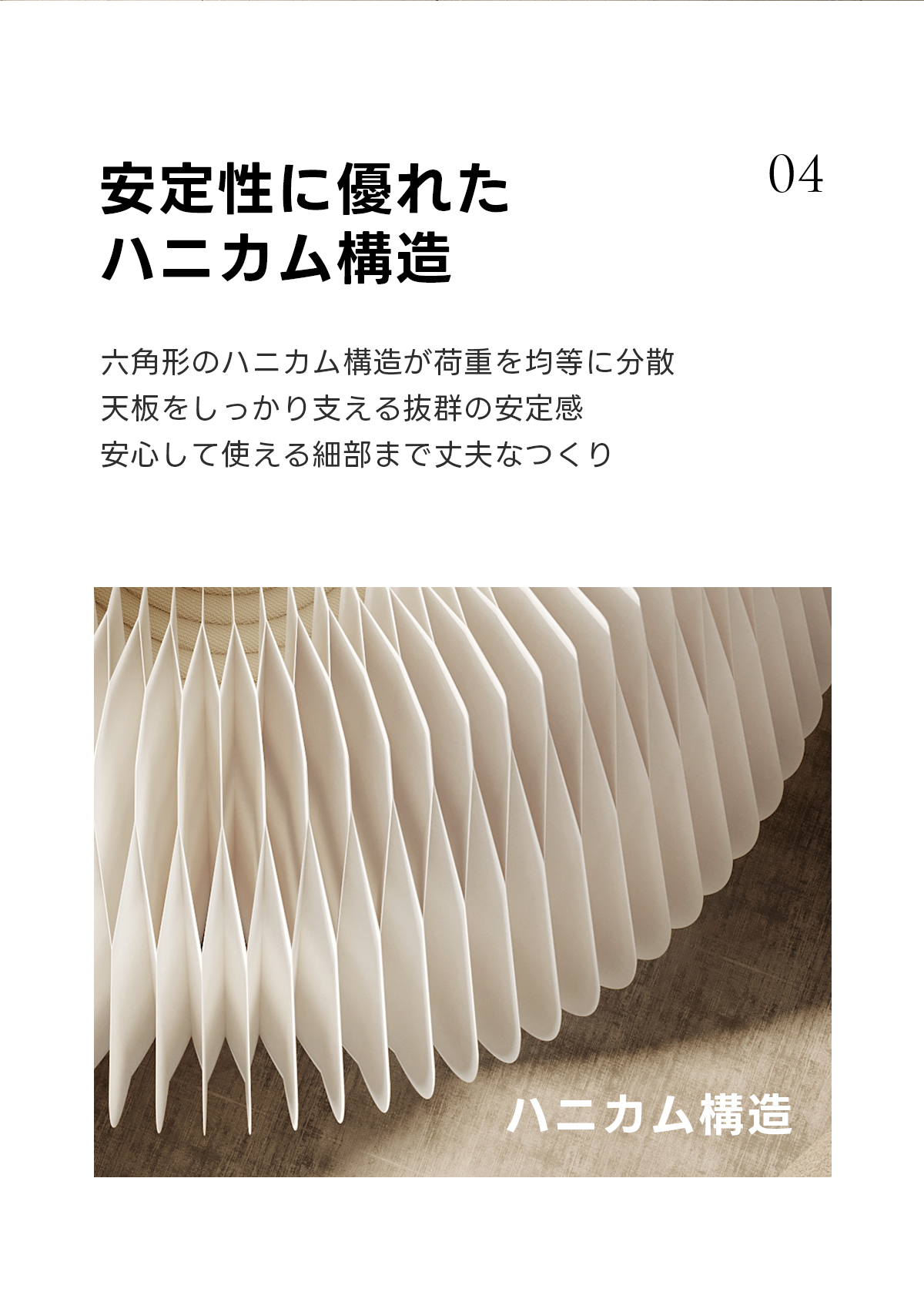 - 【素材とデザイン】:高品質なクラフト紙を使用したエコ素材で、環境に優しい無臭設計です。六角形のハニカム構造が荷重を均等に支え、安定感を提供します。グレーとホワイトの2色展開で、インテリアに合わせて選べます。