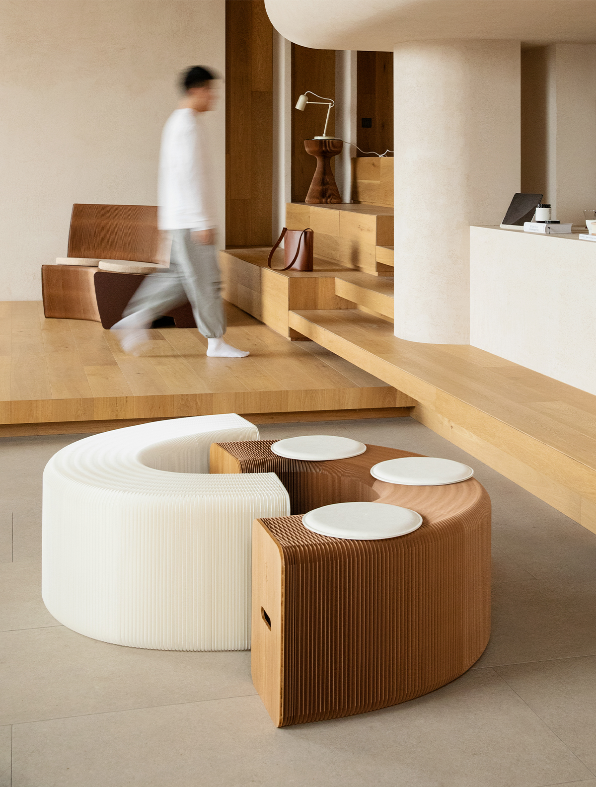 Kraft Paper アコーディオン型 クラフト紙ロングスツール