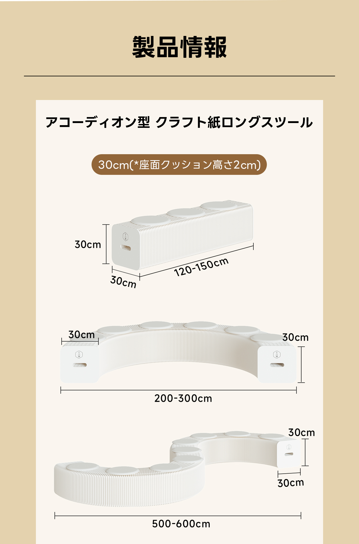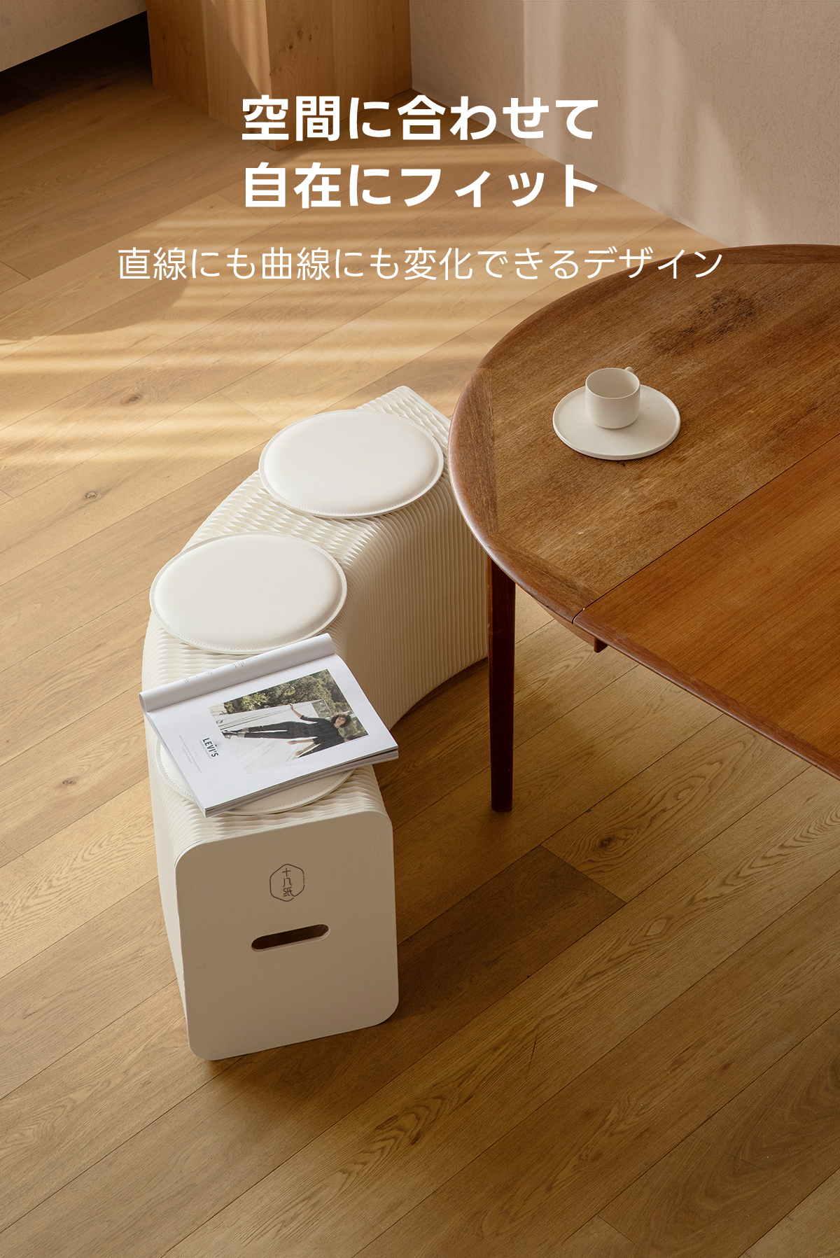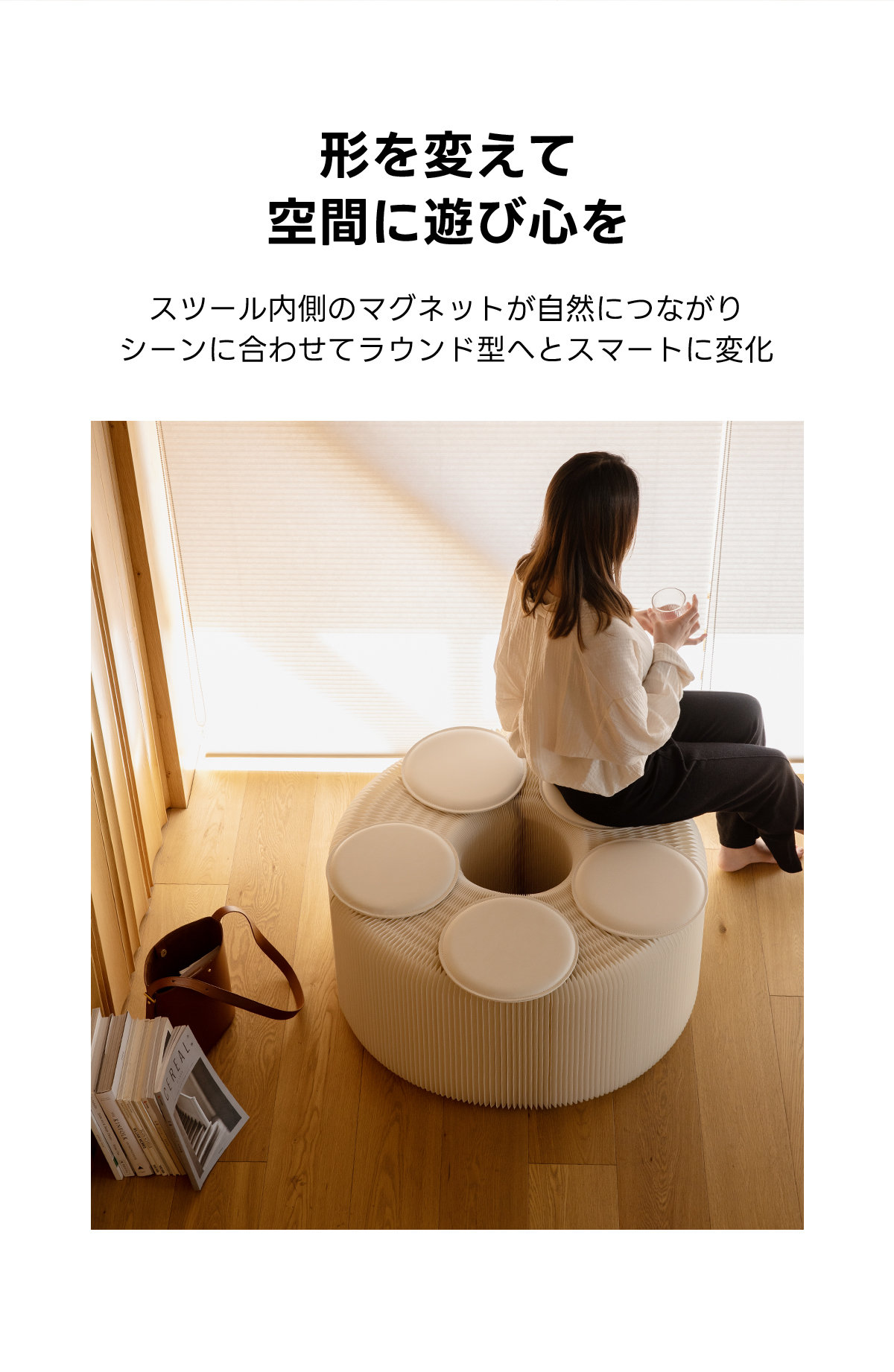 - 【フレキシブルなデザインで自由自在】:アコーディオン型構造により、自由に形を変えることができるこのスツールは、直線にも曲線にも対応可能。空間に合わせたレイアウトが可能で、どんなインテリアにもマッチします。