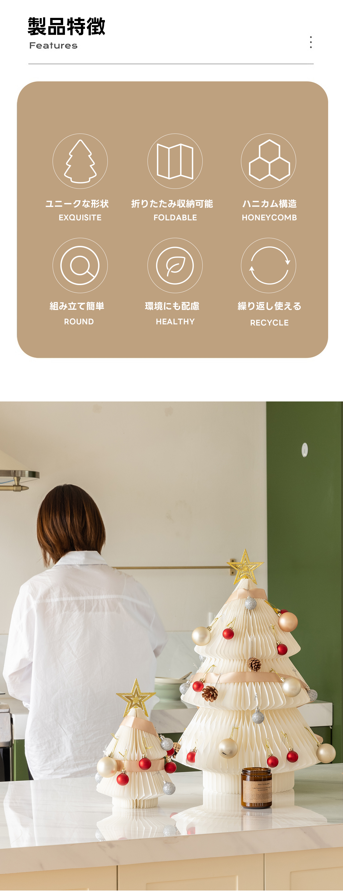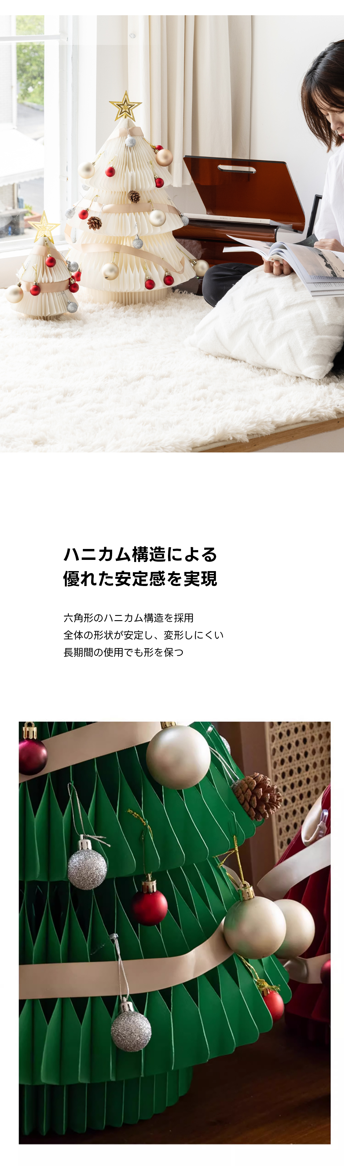 - 【ユニークな形状とハニカム構造】このクリスマスツリーは、六角形のハニカム構造を採用しており、安定感が抜群です。長期間の使用でも形を保ち、クリスマスの雰囲気を長く楽しむことができます。