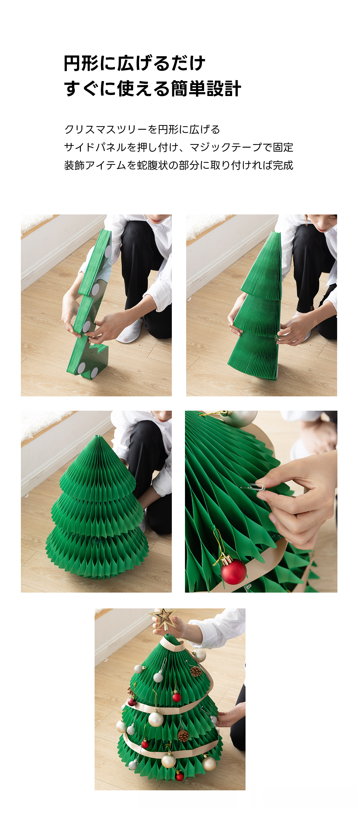 - 【簡単組立で便利】円形に広げるだけで簡単に組み立てることができ、サイドパネルを押し付けてマジックテープで固定するだけで完成します。手間いらずで、すぐに飾り付けを楽しめます。