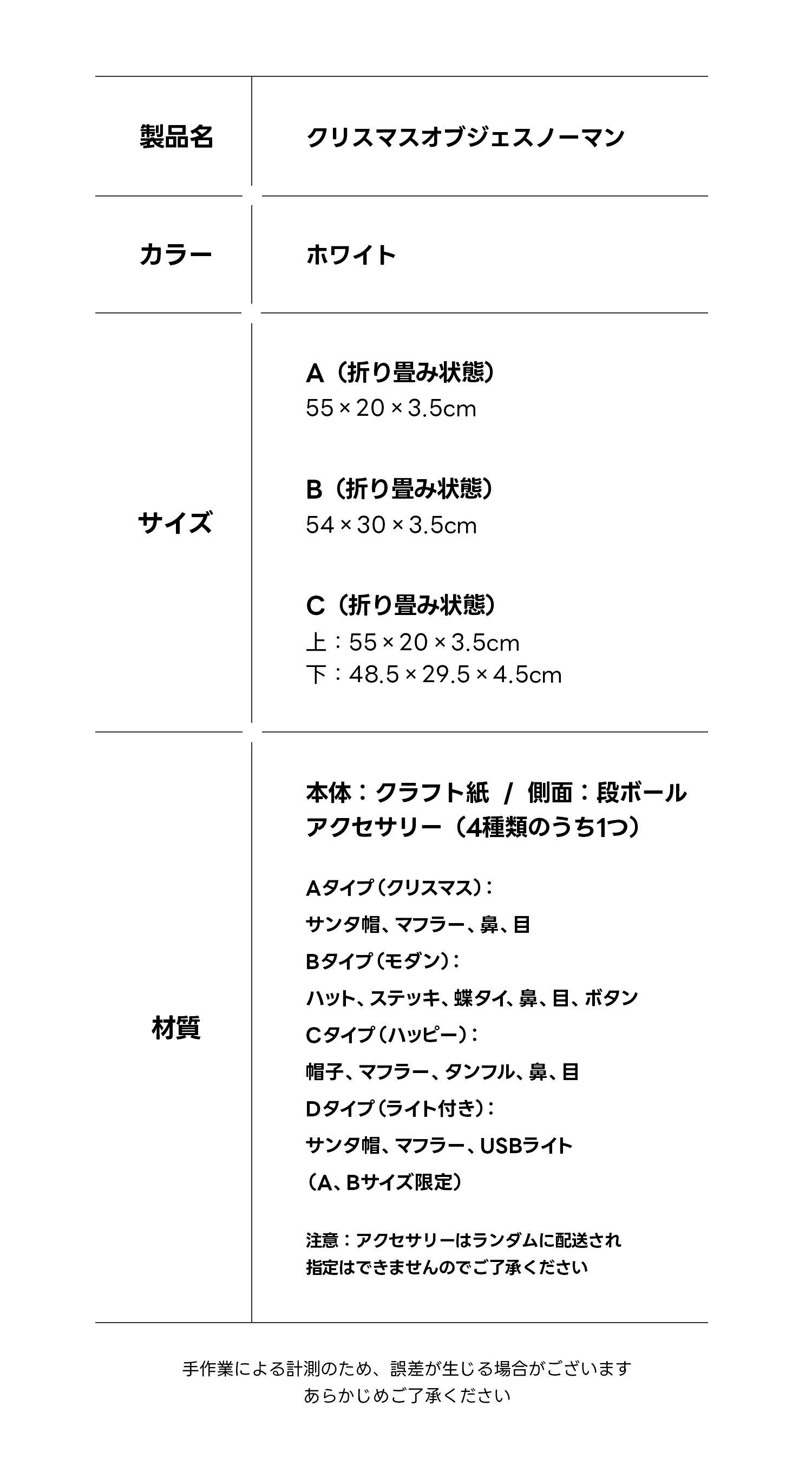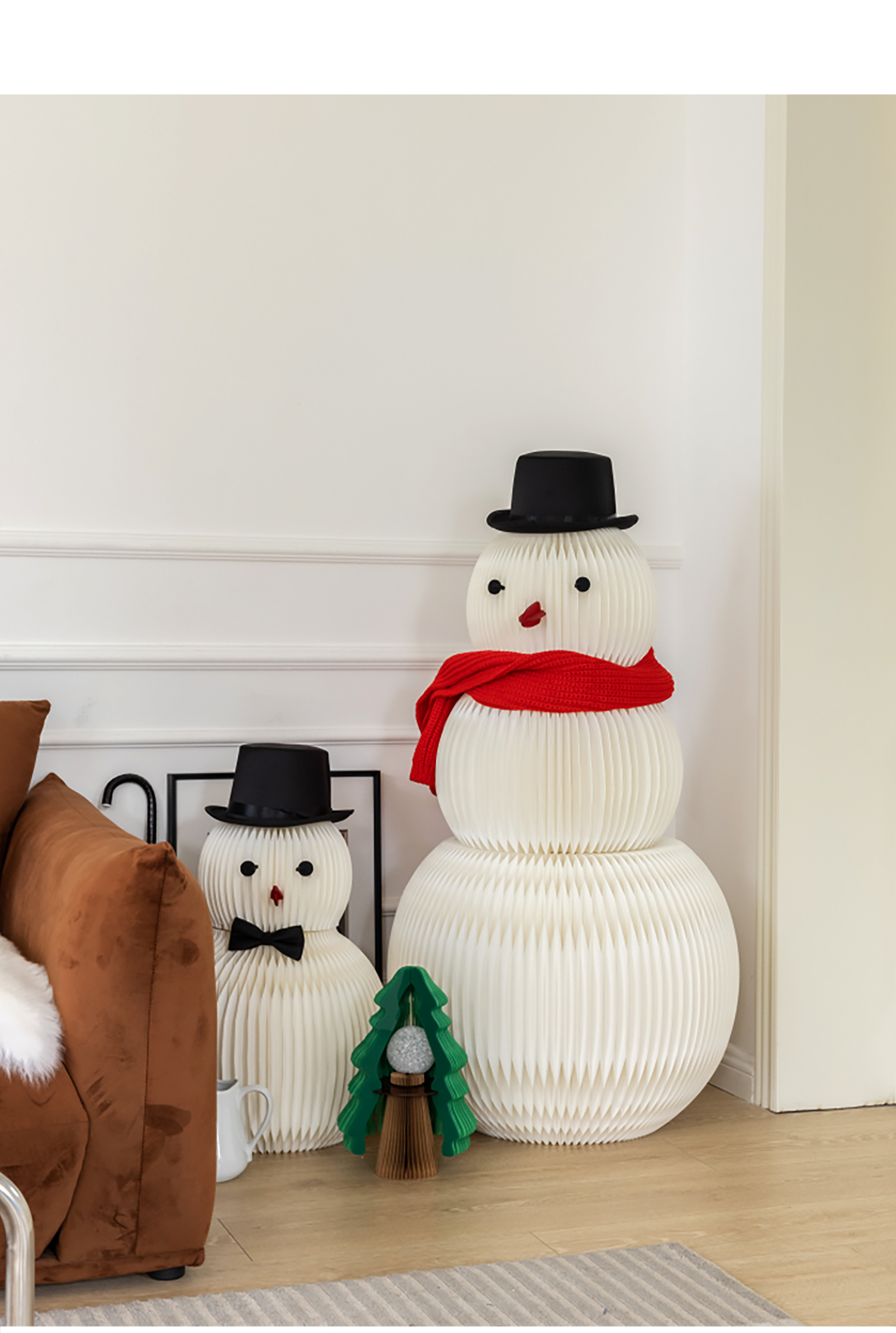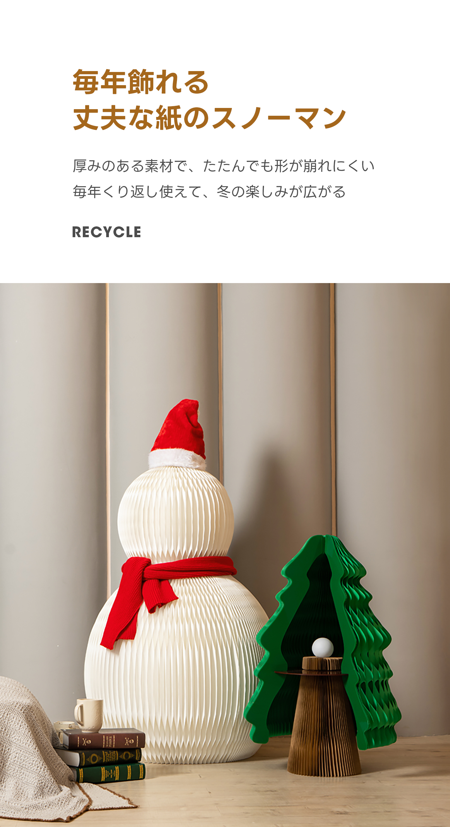 - 【軽量で安定感のあるデザイン】クラフト紙を使用し、ハニカム構造を採用したクリスマスオブジェスノーマンは、軽量でありながら安定感を提供します。どんなインテリアにもマッチするシンプルモダンなデザインで、クリスマスの雰囲気を一層引き立てます。