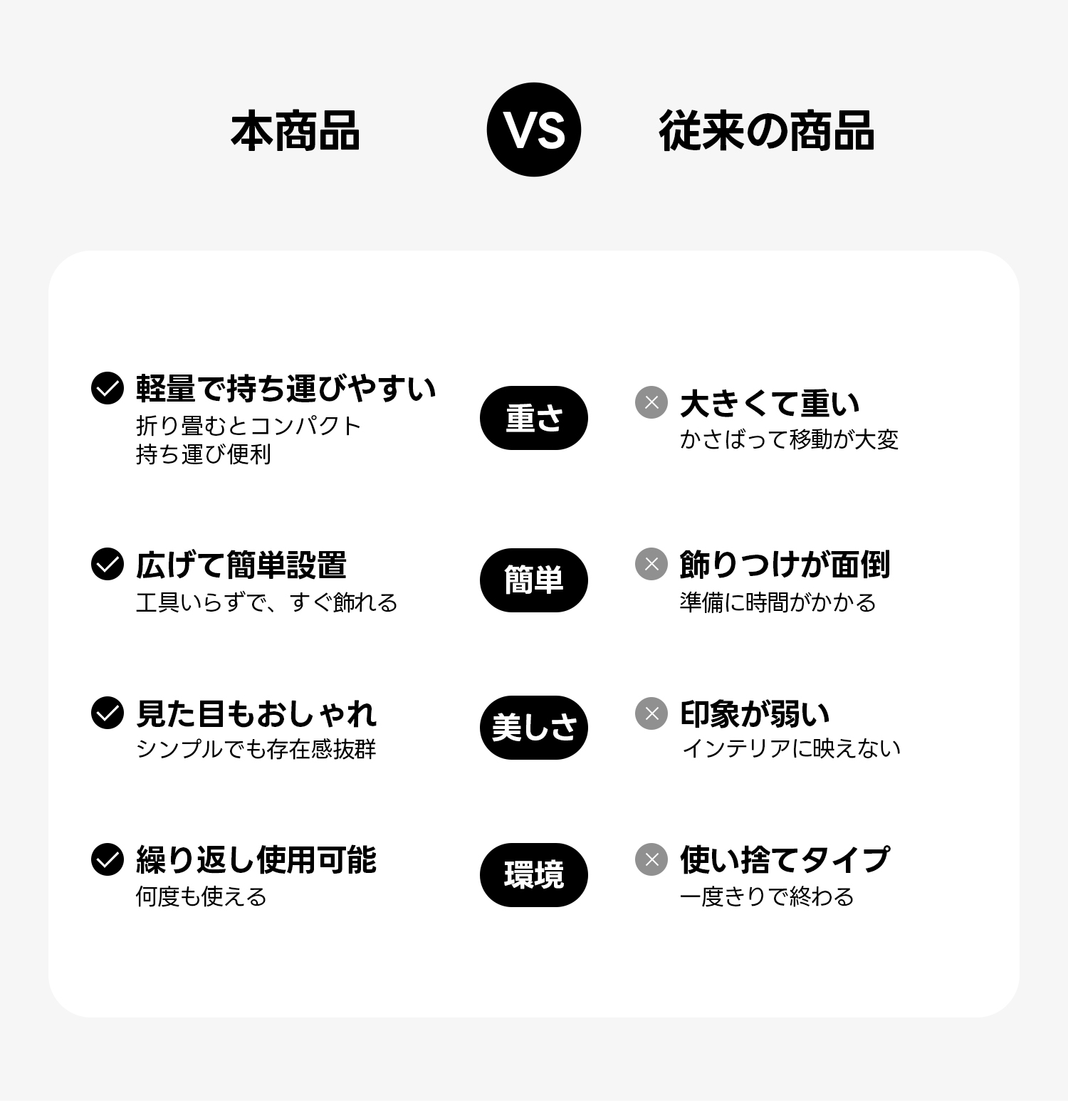- 【簡単な組み立てと収納】折りたたみ可能なデザインで、収納時には場所を取らず、持ち運びも簡単です。コンパクトに折りたたんで収納できるため、スペースを有効活用できます。