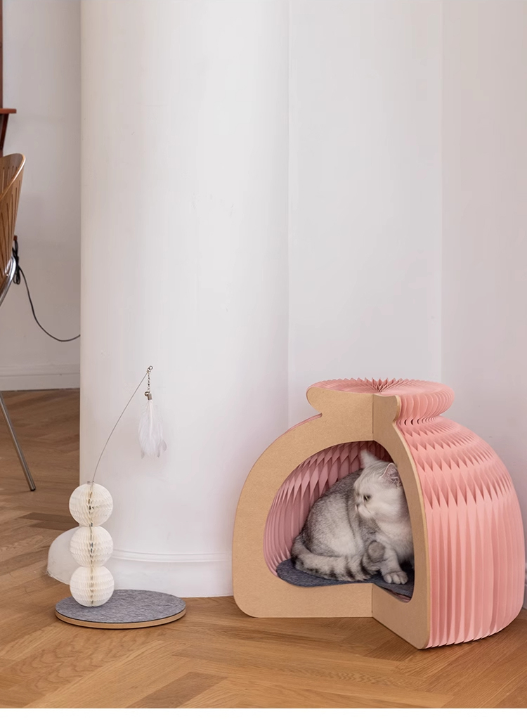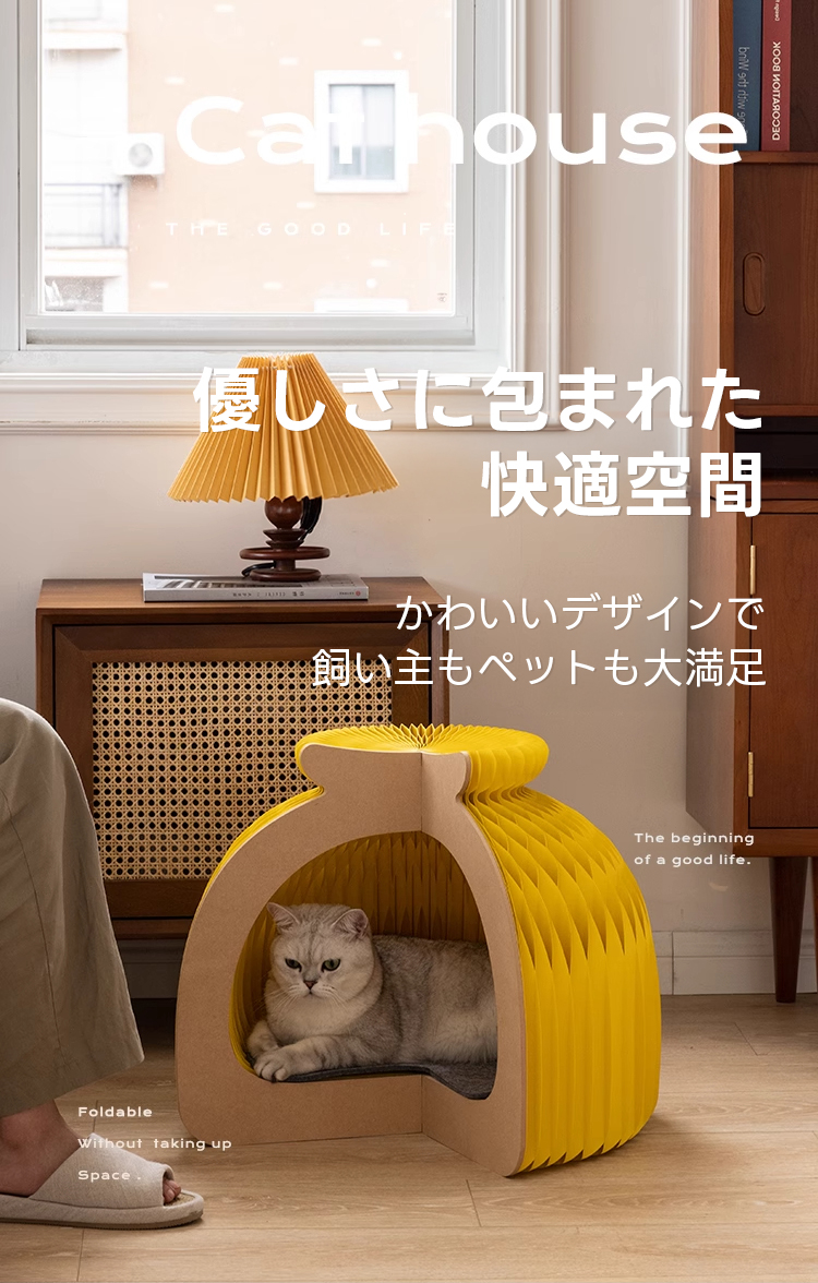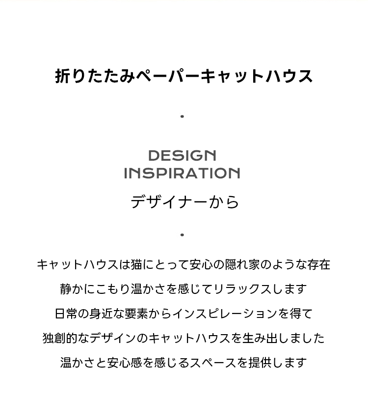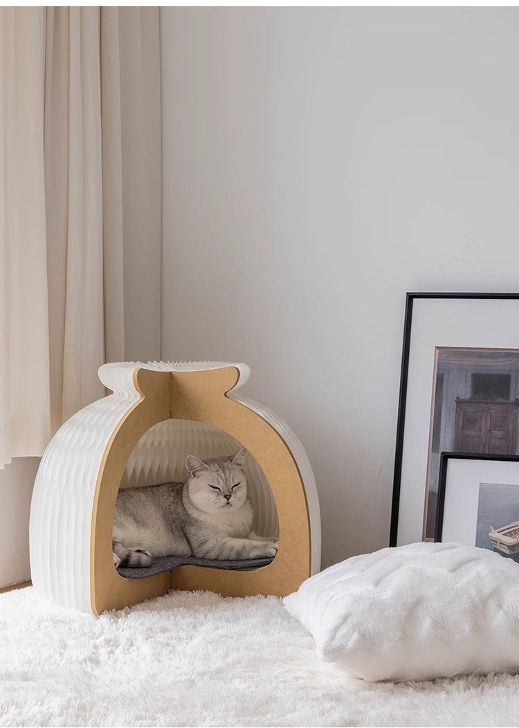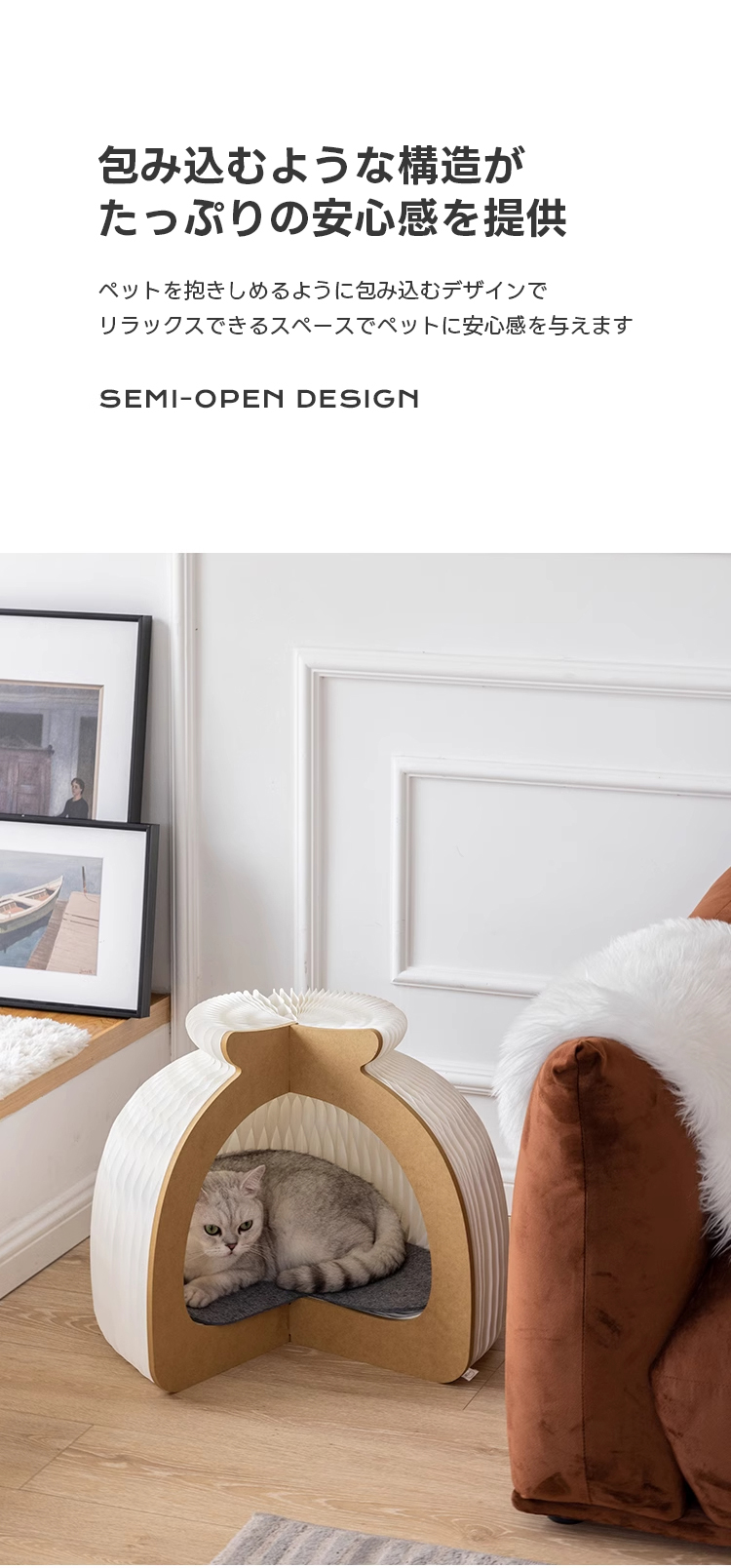 - 【快適な隠れ家を提供】:この折りたたみペーパーキャットハウスは、猫ちゃんに安心感を与える快適な隠れ家を提供します。包み込むようなデザインで、ペットがリラックスできるスペースを確保します。