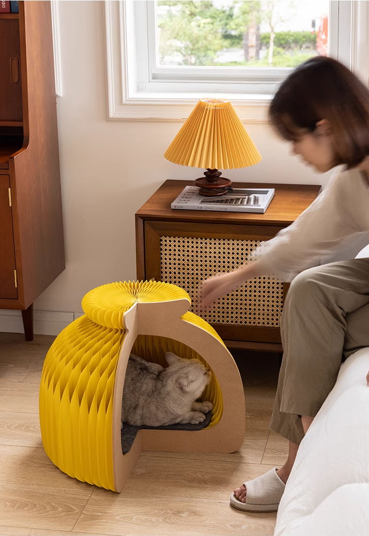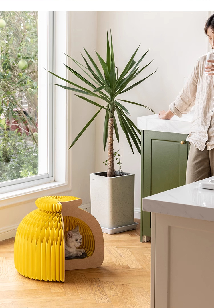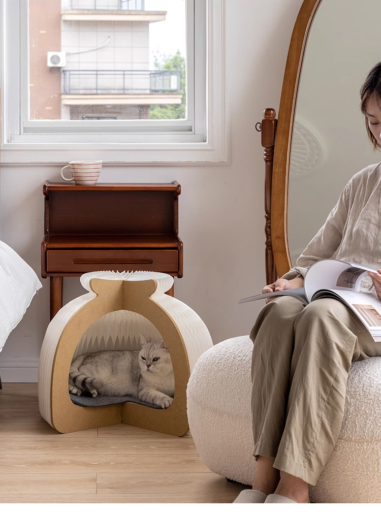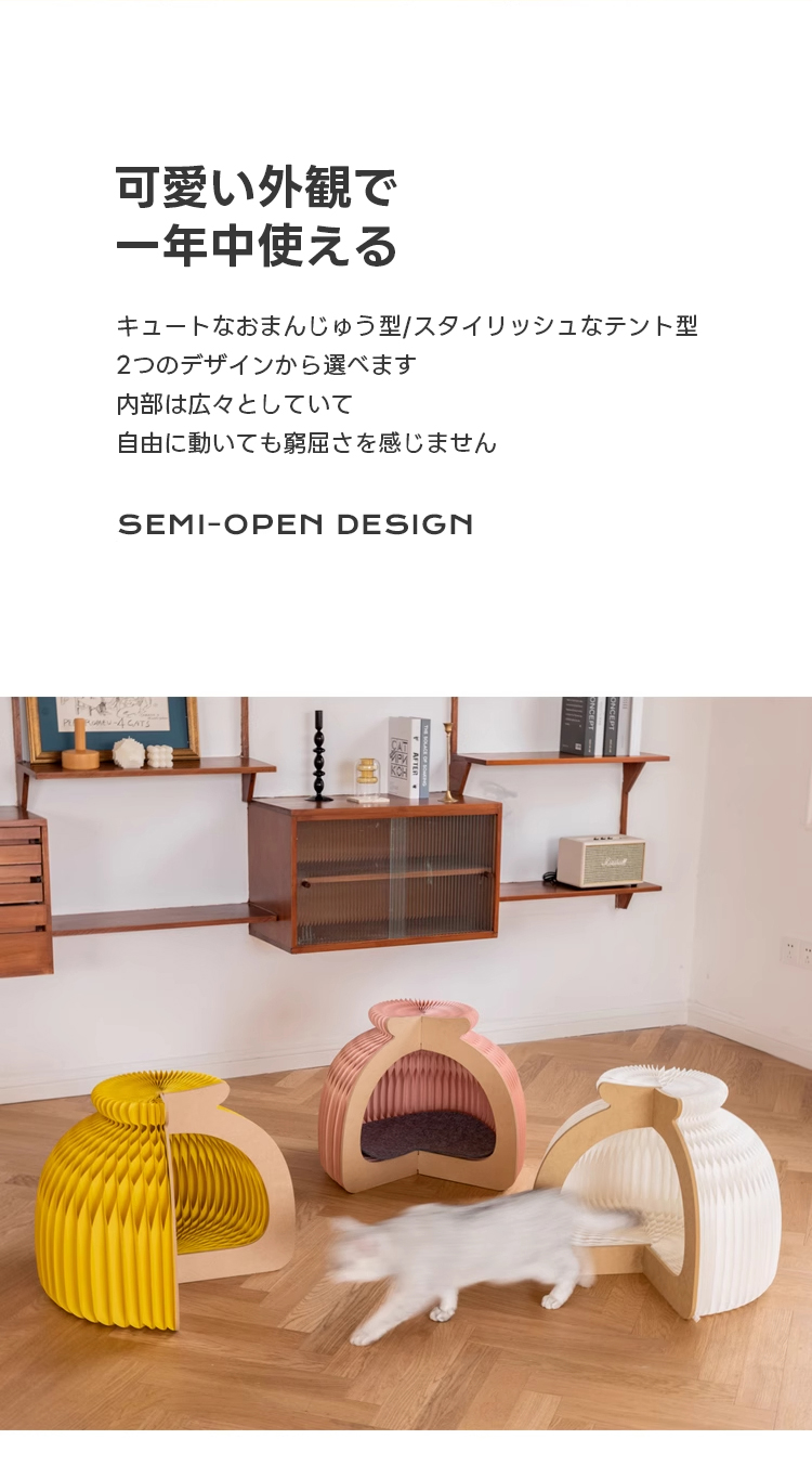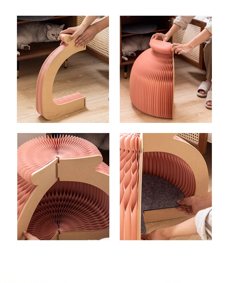 - 【快適な隠れ家を提供】:この折りたたみペーパーキャットハウスは、猫ちゃんに安心感を与える快適な隠れ家を提供します。包み込むようなデザインで、ペットがリラックスできるスペースを確保します。
