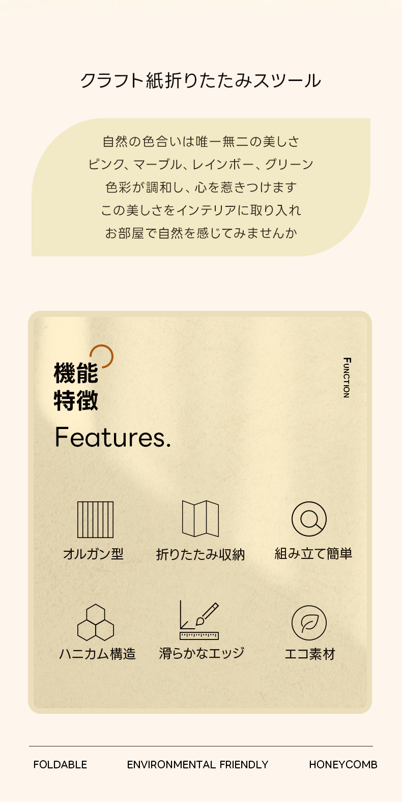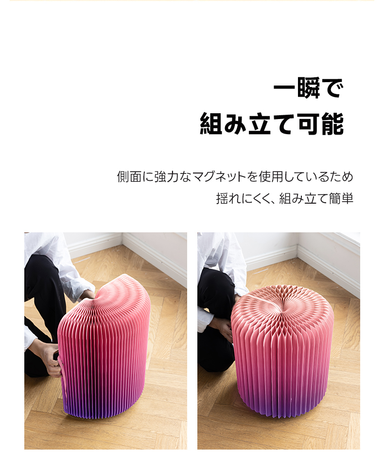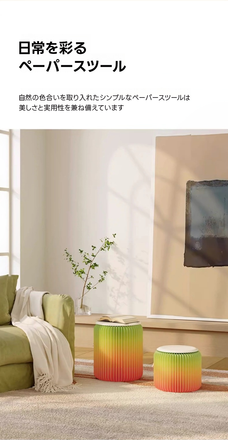 - 【オルガン型デザインで省スペース収納】このクラフト紙折りたたみスツールは、オルガン型デザインを採用し、使用しない時はコンパクトに収納可能です。シンプルでモダンなデザインが、リビングや寝室、オフィスなど様々な空間に自然の美しさを取り入れます。