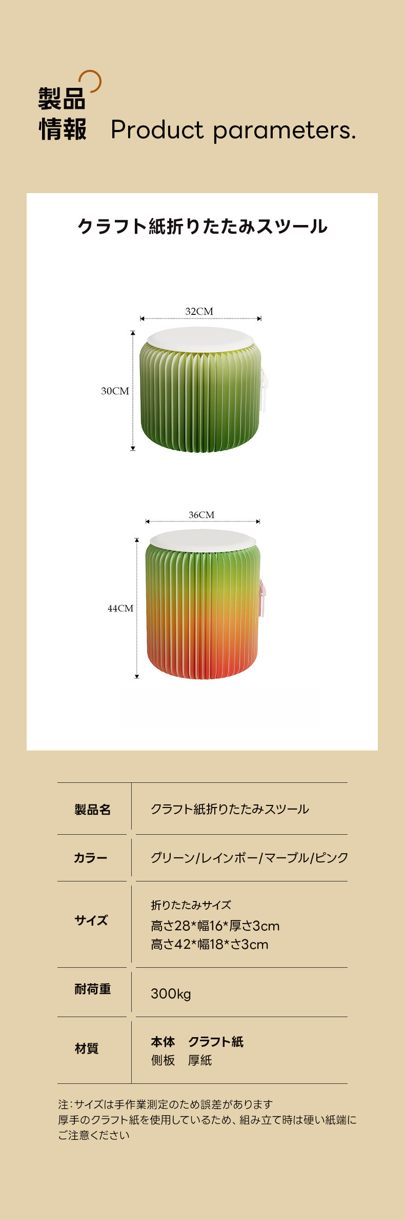 - 【快適な使用体験】このスツールは、自然の色合いと実用性を兼ね備えたアイテムです。表面は撥水加工済みで、濡れた場合は拭き取るか自然乾燥させてください。水との接触は極力避けてください。